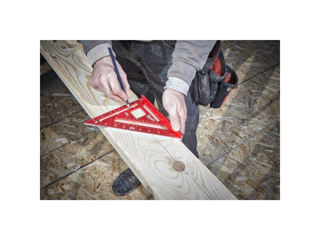 - Tři úhlové stupnice pro použití na běžné krokve, nárožní a úžlabní trámy.