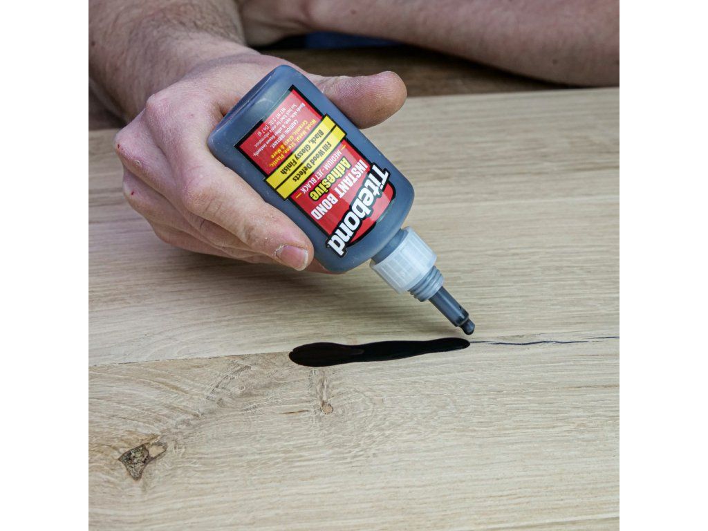 Titebond Instant Medium Jet Black je rychletuhnoucí kyanoakrylátové (CA) lepidlo se střední dobou tuhnutí a střední viskozitou. Toto profesionální lepidlo na dřevo má univerzální využití. Po zaschnutí má leskle černou barvu, proto se hodí pro zvýraznění detailů, tvorbu intarzií, lepení patinovaného dřeva nebo obyčejnému vyplnění spár, suků a dutin ve dřevě.