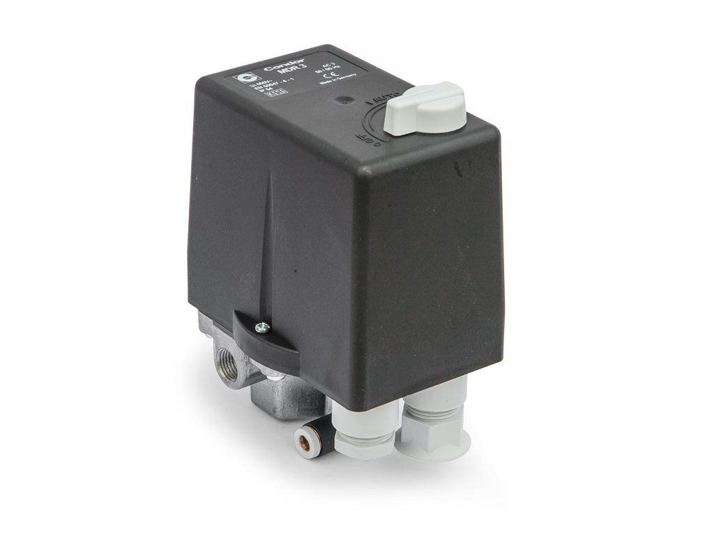 Kvalitní tlakový spínač Condor s nastavitelným vypínacím tlakem 6 - 16 bar.