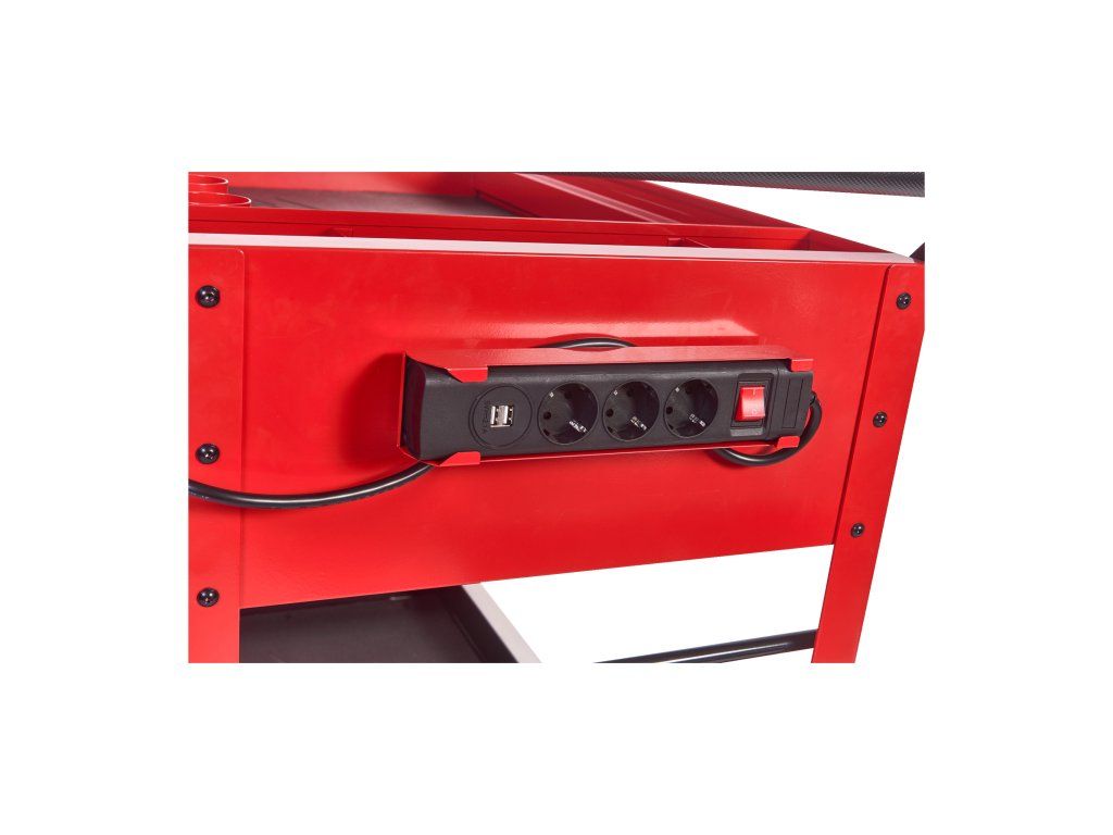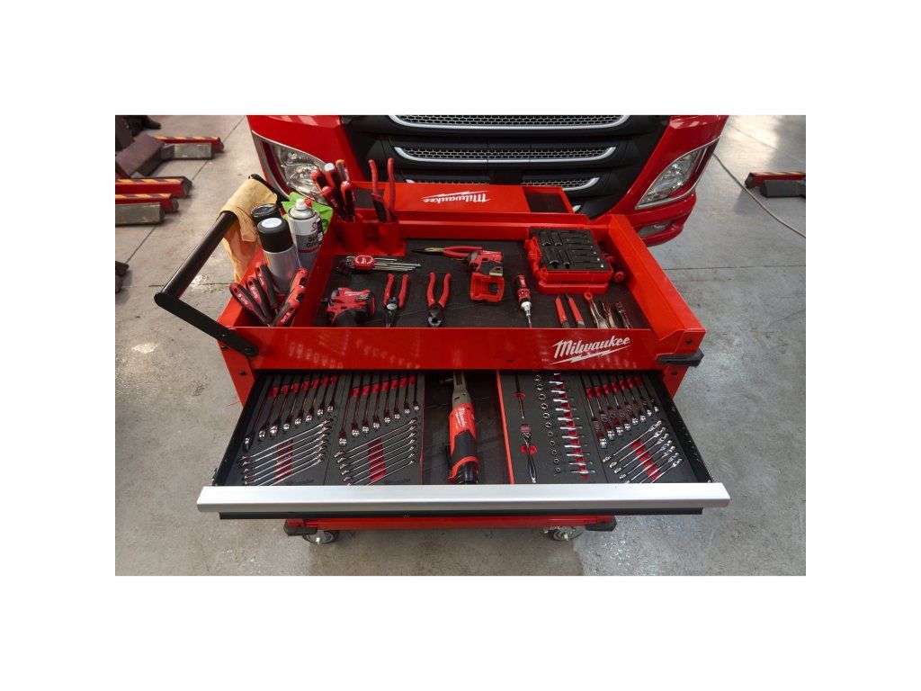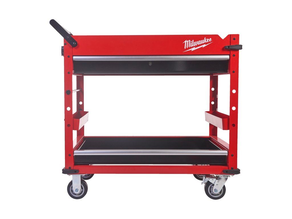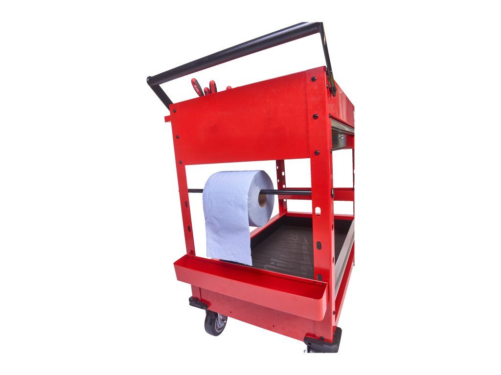 - 2 odnímatelné úložné misky, které lze převrátit vzhůru nohama pro vytvoření rovného povrchu, nebo zcela vyjmout pro vertikální uložení dlouhého nářadí.