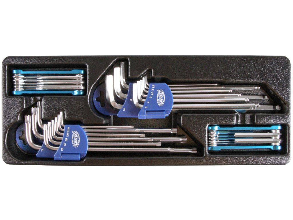 Plastová výplň profesionálních Torx a Imbusových klíčů do dílenských vozíků nebo pracovních stolů (ponků).