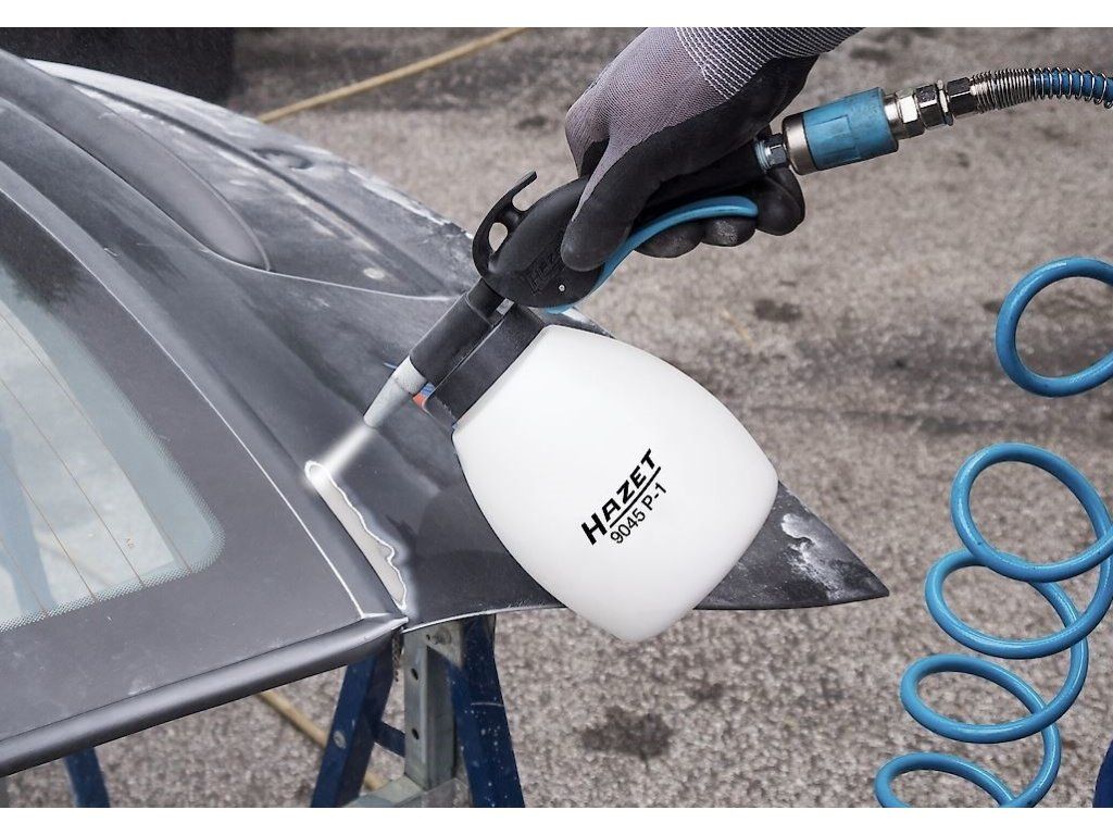 Tryskací pistole HAZET 9045P-1 na pískování sodou pro šetrné čištění a odstraňování nátěrů bez poškození povrchu nebo okolního prostředí.