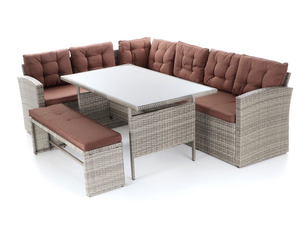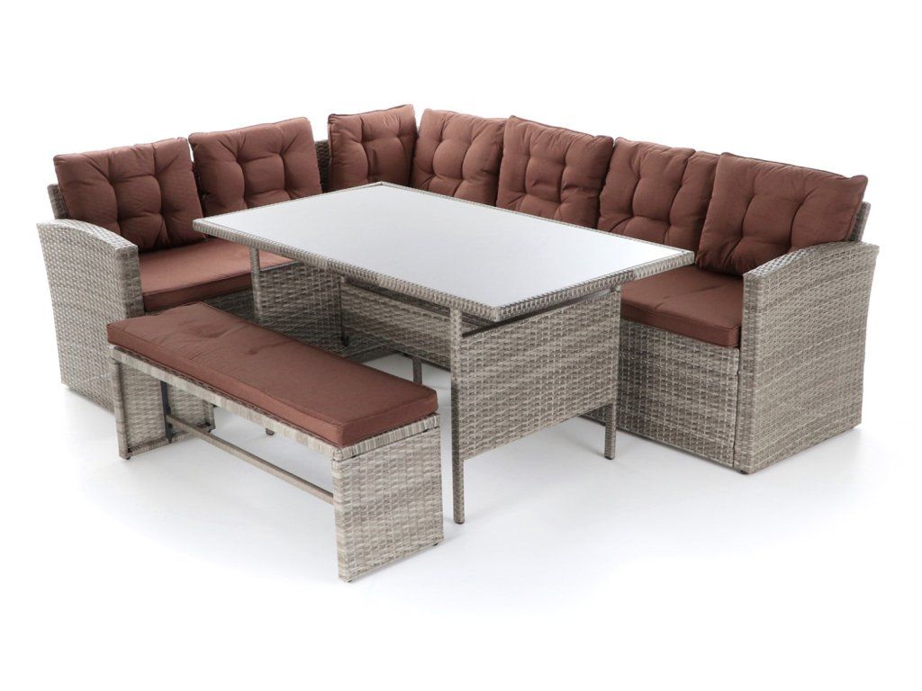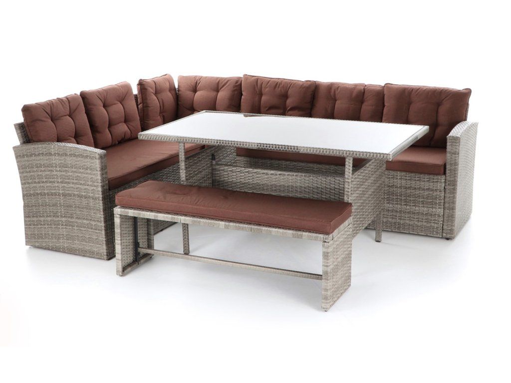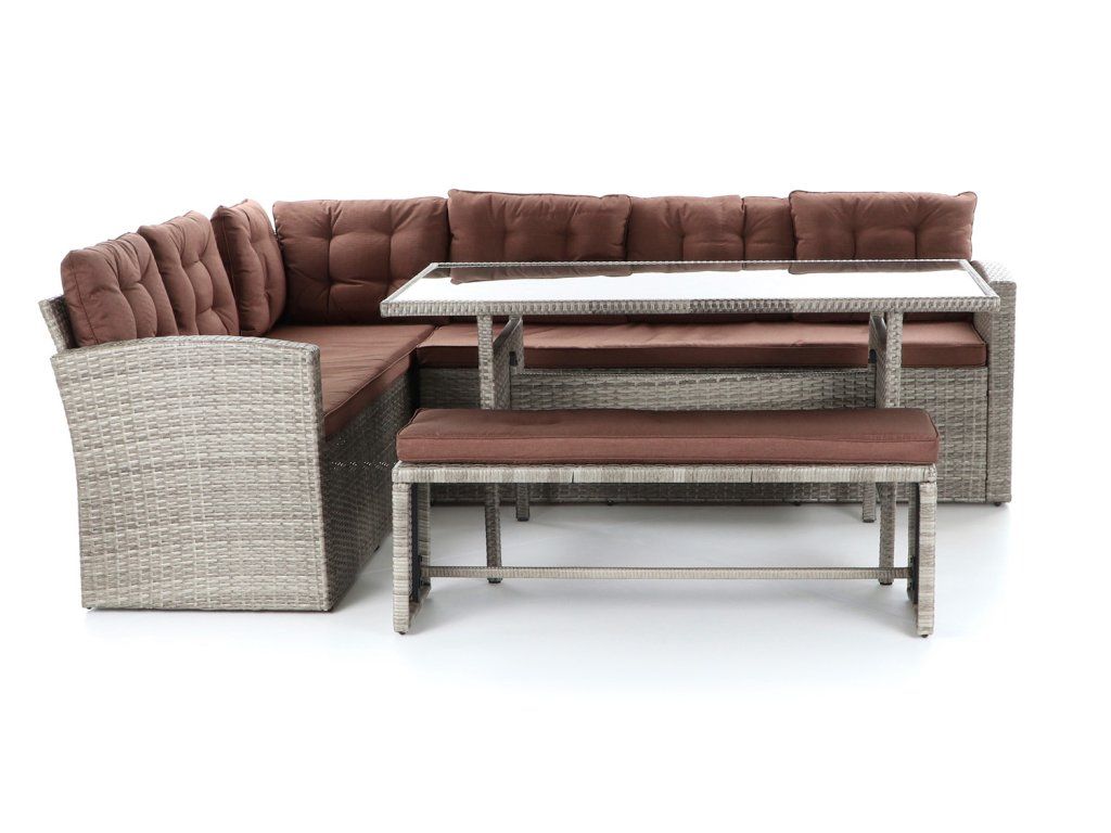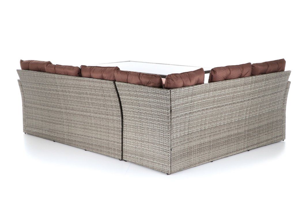 Luxusní rohová zahradní sestava s jídelním stolem určena k příjemnému posezení při relaxu s přáteli na terase či zimní zahradě.