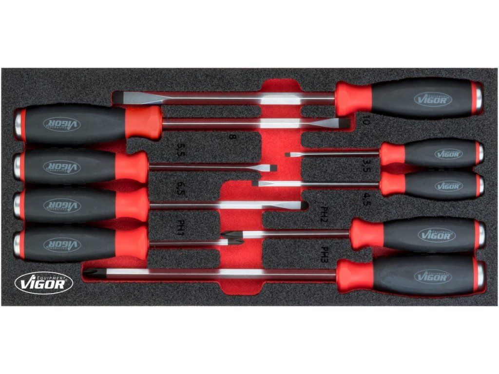 Úderové šroubováky ve výplni do dílenského vozíku, 9 ks VIGOR - V5068
