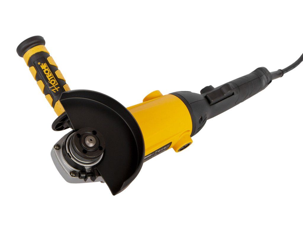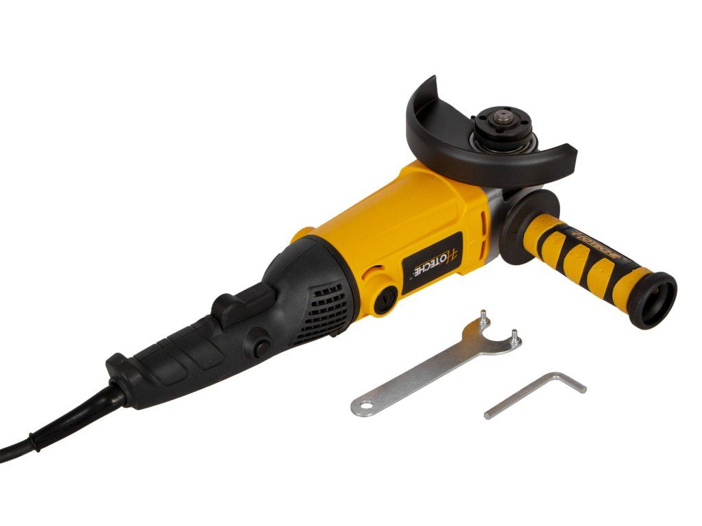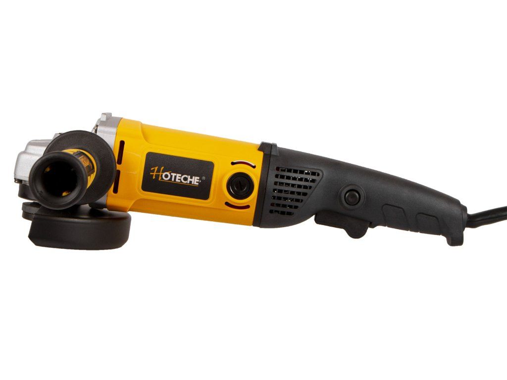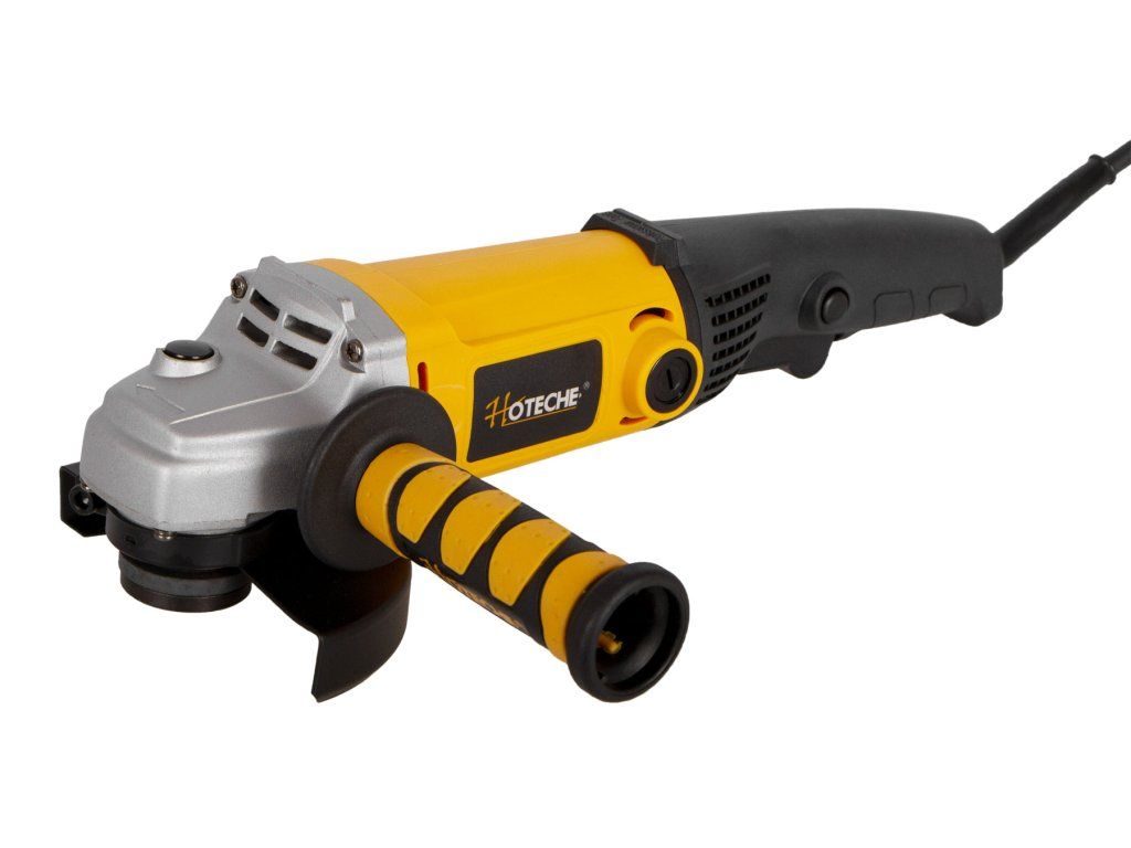 Kompaktní jednoruká elektrická úhlová bruska Hoteche s výkonem 1200 W.
