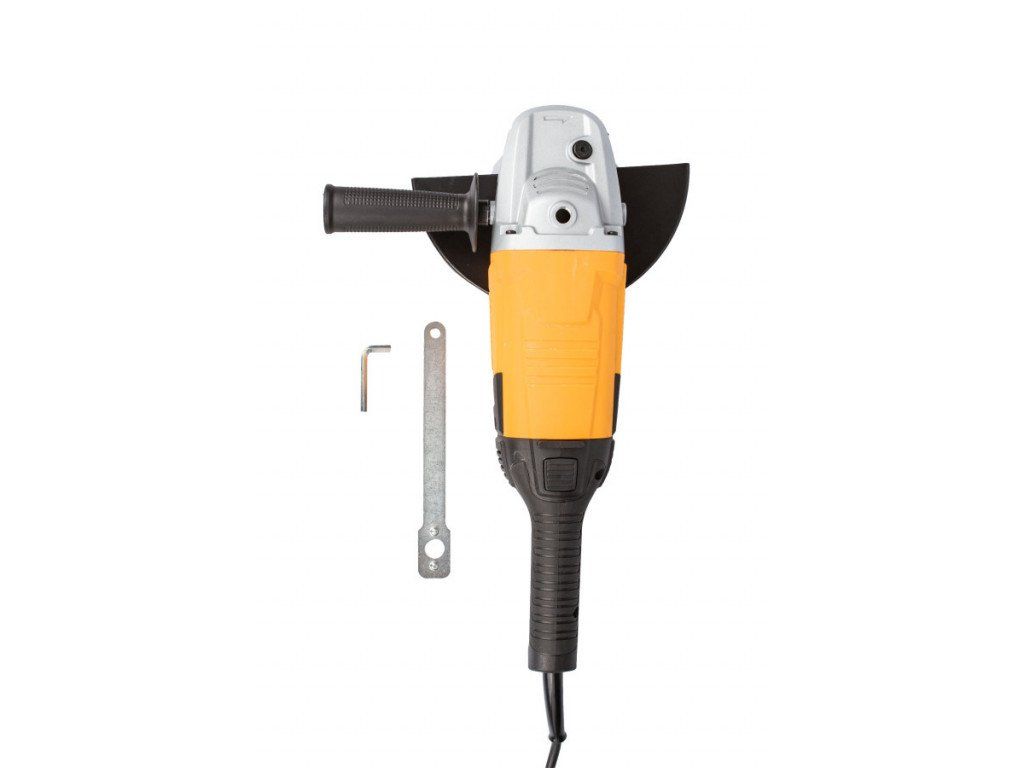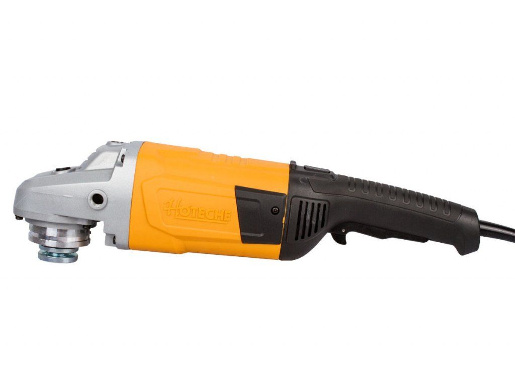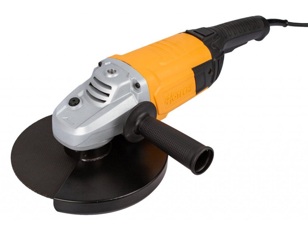 Velmi výkonná úhlová bruska Hoteche 230 mm s výkonem 2400W, díky kterému dosahuje až 6500 otáček za min-1 naprázdno. Řezat, brousit nebo kartáčovat můžete pomocí kotoučů o průměru 230 mm, které upnete na vřeteno se závitem M14.