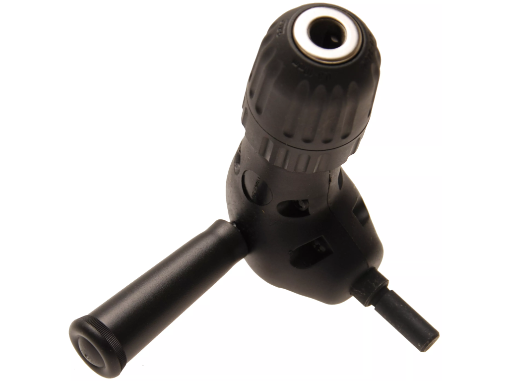 Praktický úhlový adaptér (90°) pro vrtačky a AKU šroubováky s možností upnutí vrtáků 0,8 - 10 mm.