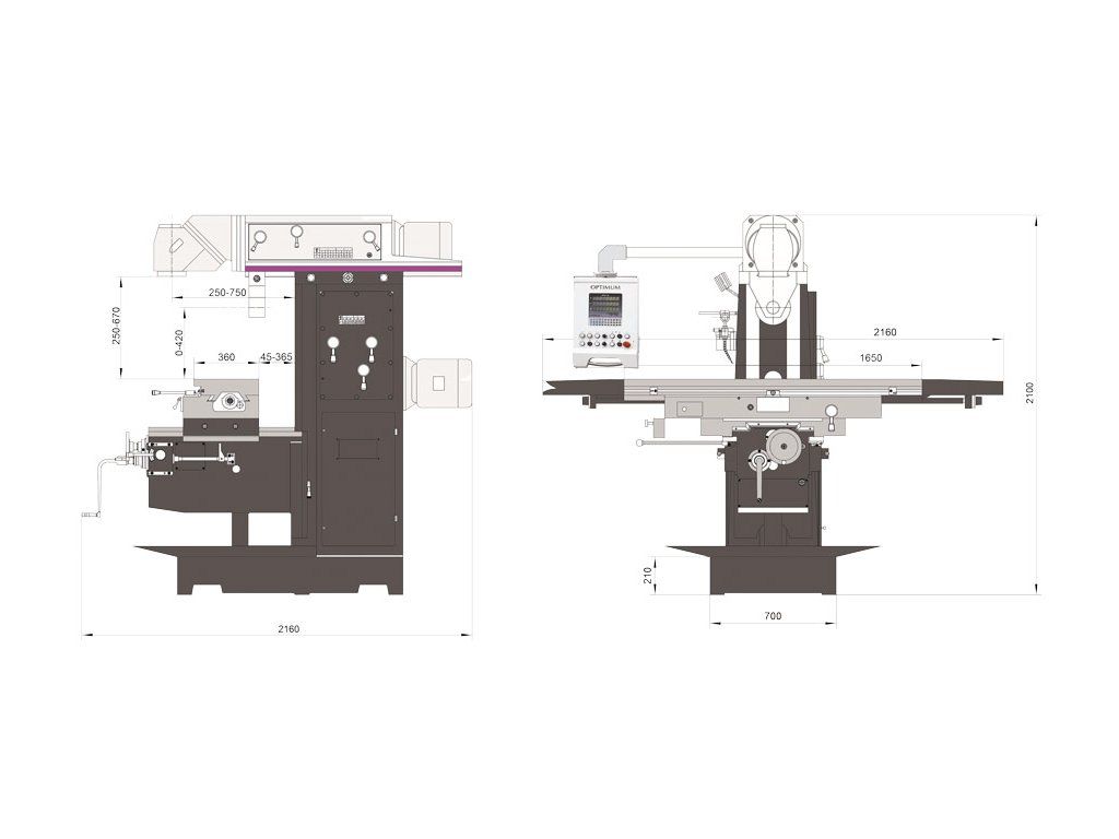 Masivní vrtačko-frézka pro horizontální i vertikální frézování s digitálním odměřováním DPA 31 Plus.- Možnost práce v horizontální poloze s podpěrou a upínačem pro kotoučovou frézu