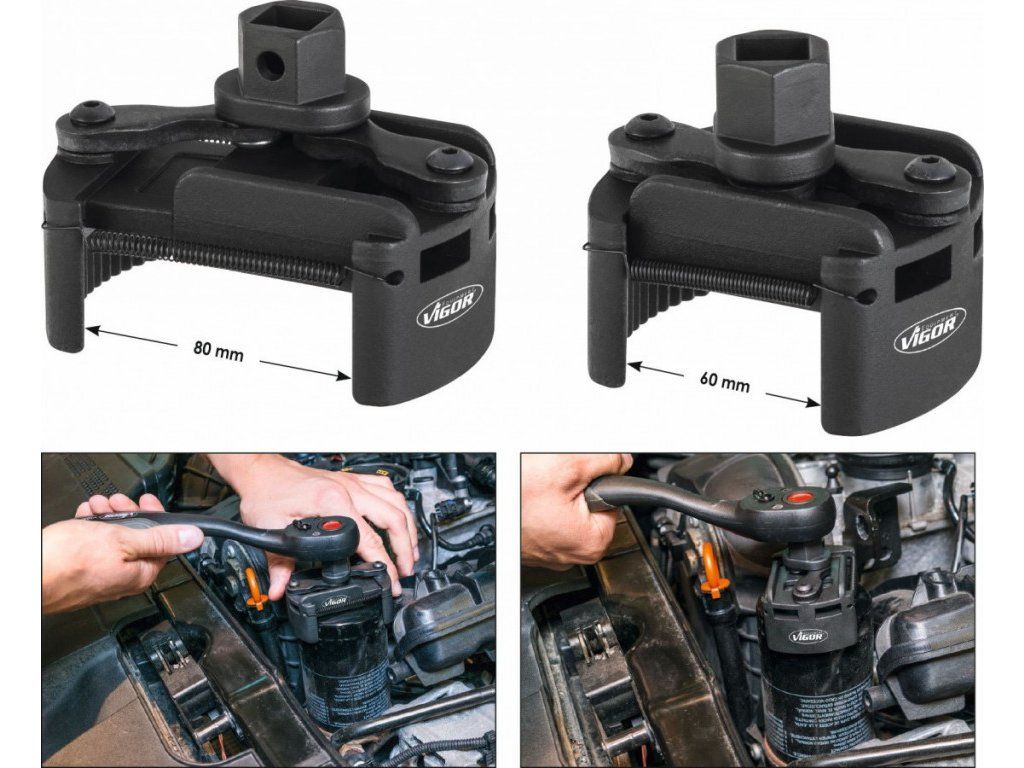 Optimální stabilita při uvolňování olejového ltru díky čelistem s levým ozubením