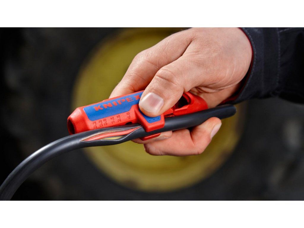 - K rychlému a přesnému odizolování všech běžných kabelů kruhového průřezu a kabelů pro vlhké prostory (např. kabelů NYM 3 x 1,5 mm² až 5 x 2,5 mm²), datových kabelů (např. Twisted-Pair) a koaxiálních kabelů.