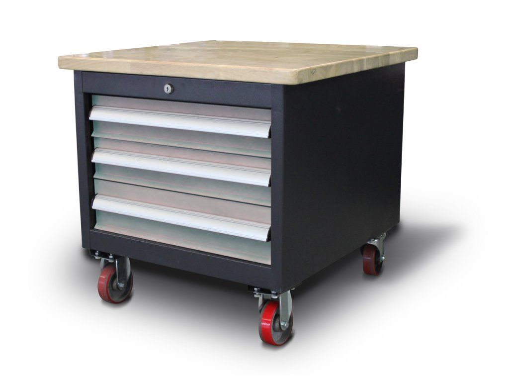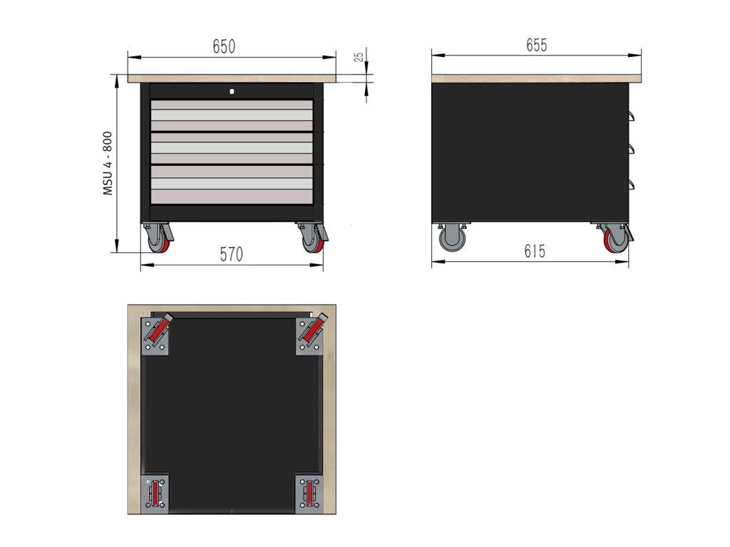Univerzální pojízdný podstavec / montážní stůl se třemi uzamykatelnými zásuvkami.
