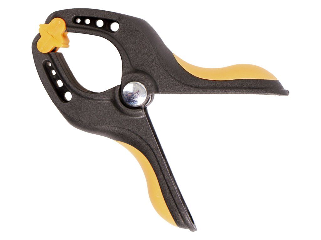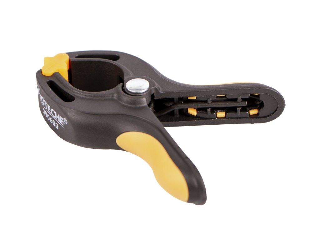 Plastová upínací svěrka od značky Hoteche s maximálním rozevřením 35 mm.