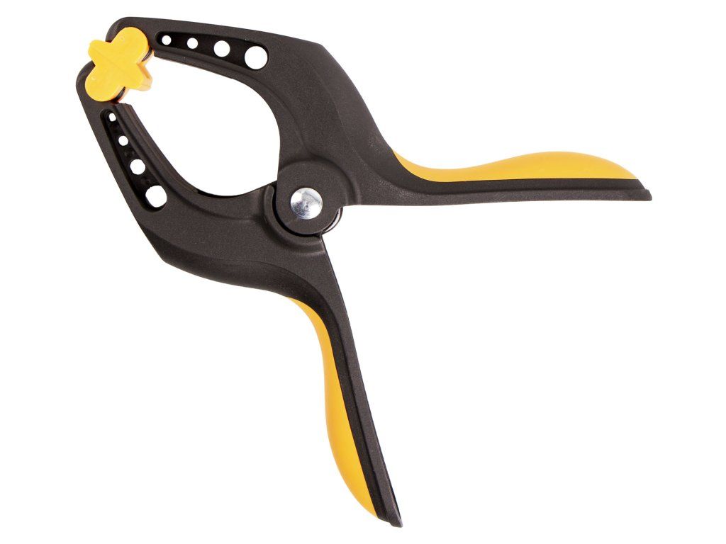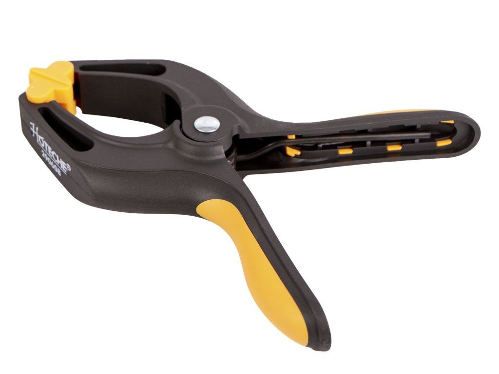 Plastová upínací svěrka od značky Hoteche s maximálním rozevřením 90 mm.