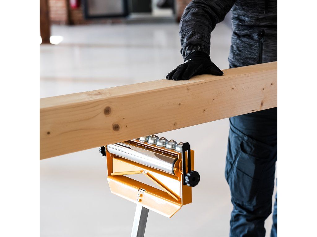 Rolovací stojan CRAFTMAKER® Roller X-Stand 4v1 využijete všude tam, kde je potřeba pracovat s dlouhým materiálem, jako jsou například ocelové trubky, ocelové profily nebo dřevěná prkna a klády. Pochromovaný ocelový váleček vám umožní posouvat materiál bez jakékoliv námahy a zajistí mu potřebnou stabilitu, stejně tak kuličková podpěra. Nožičky stojanu disponují vyrovnávacím šroubem, díky kterému je možné ho používat na nerovném povrchu. U některých projektů naopak oceníte stabilní rovnou plochu, která se neotáčí. Truhlářské pachole je plně skládací a nezabere téměř žádné místo. Výška je nastavitelná. Tento roller je primárně určen jako doplněk k pilovým stolům.