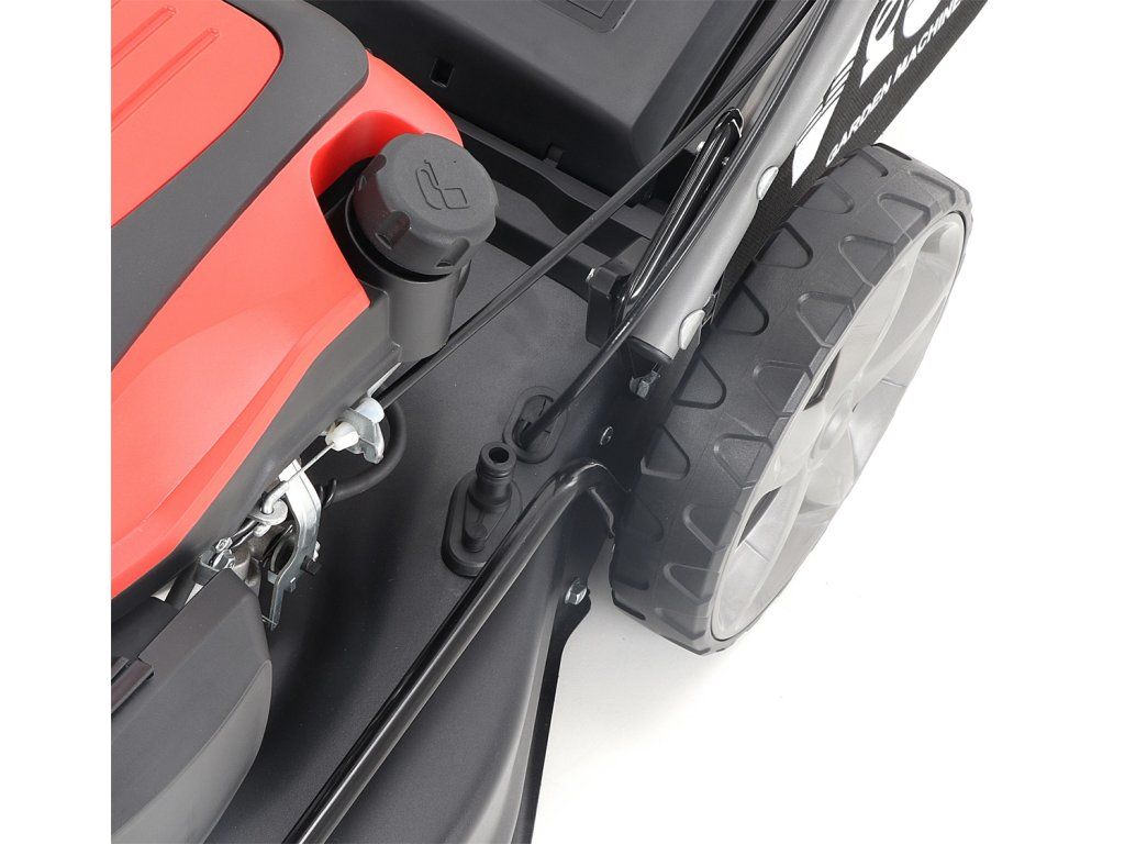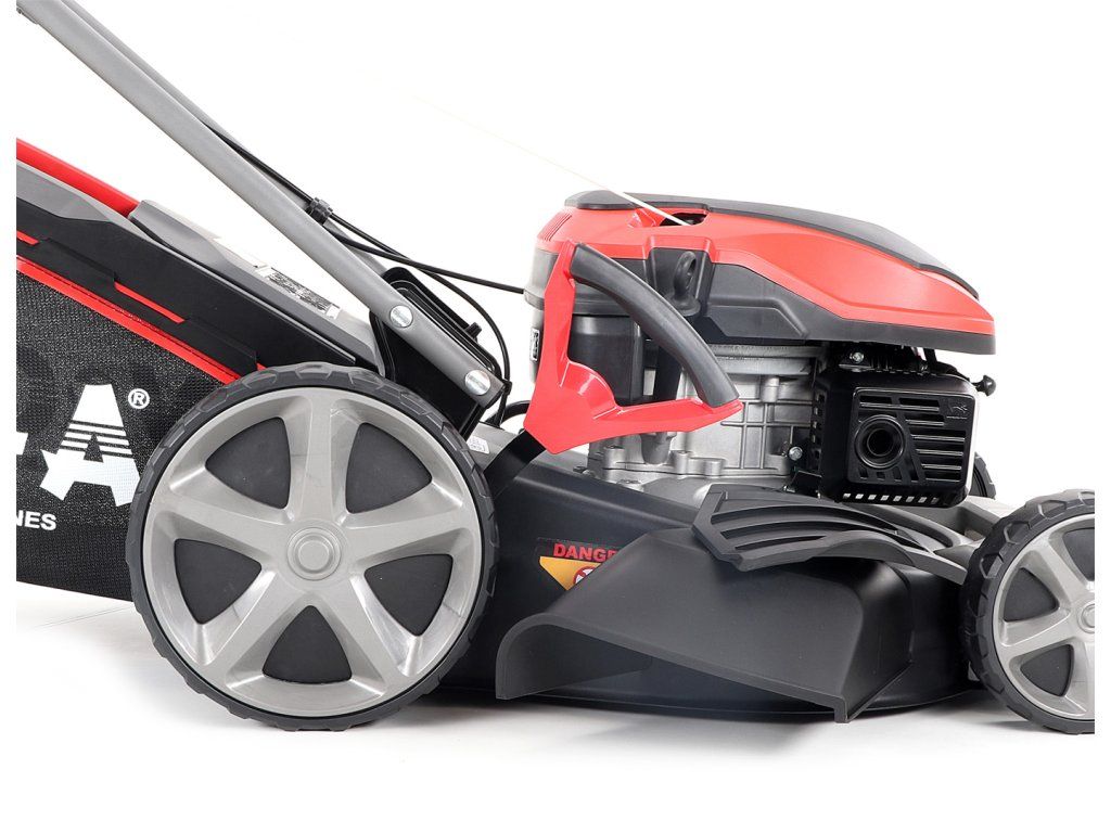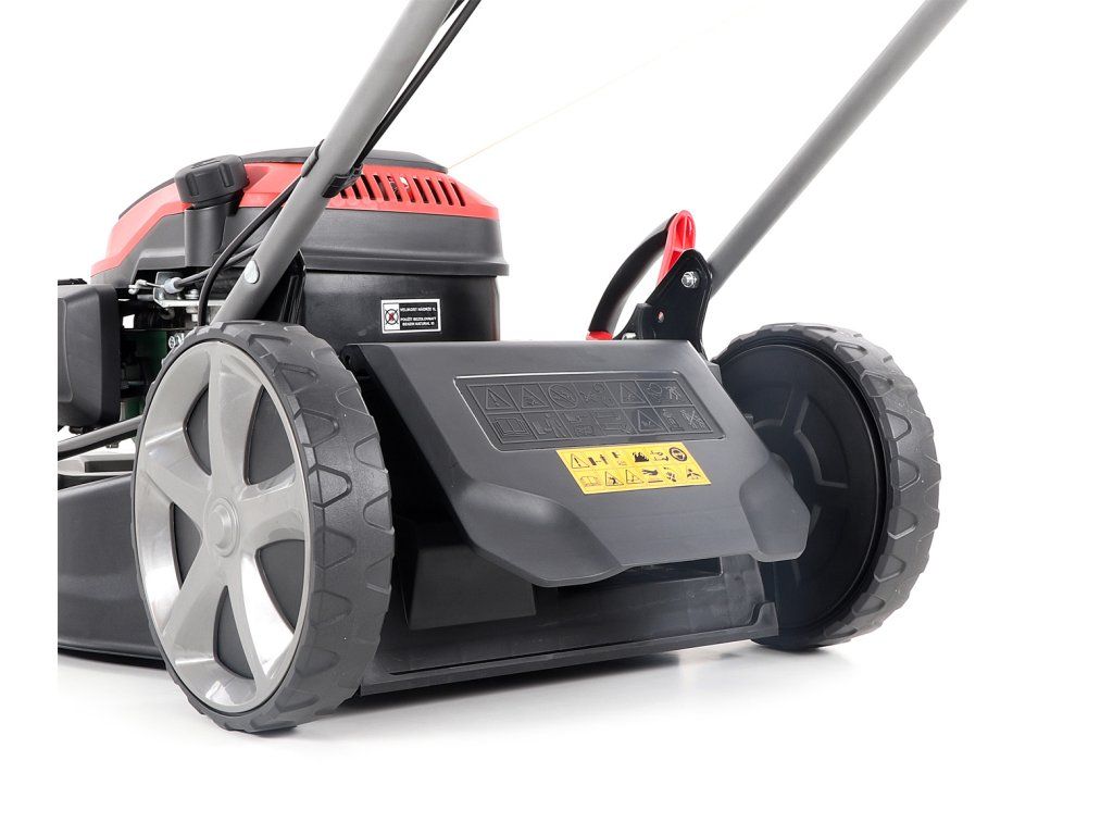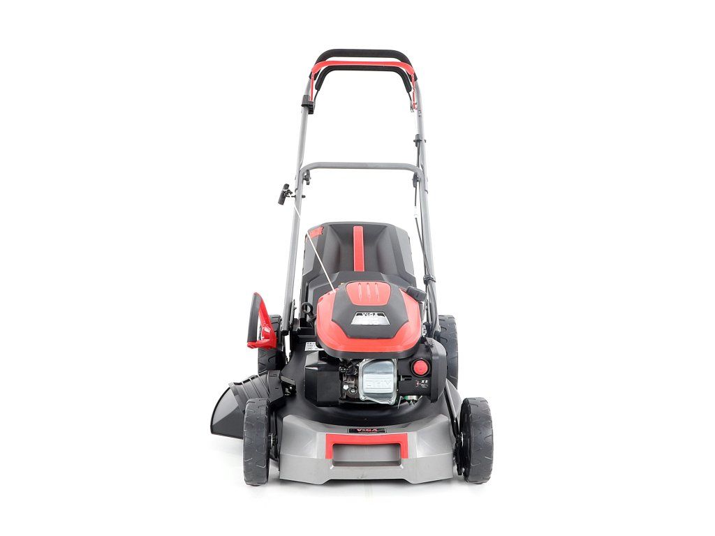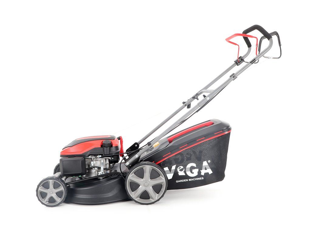 Velká zadní pojezdová kola i přední kola jsou uložena v oboustranných kuličkových ložiscích, centrální nastavení výšky sečení je u značky VeGA také samozřejmostí, jako ergonomické měkčené madlo.