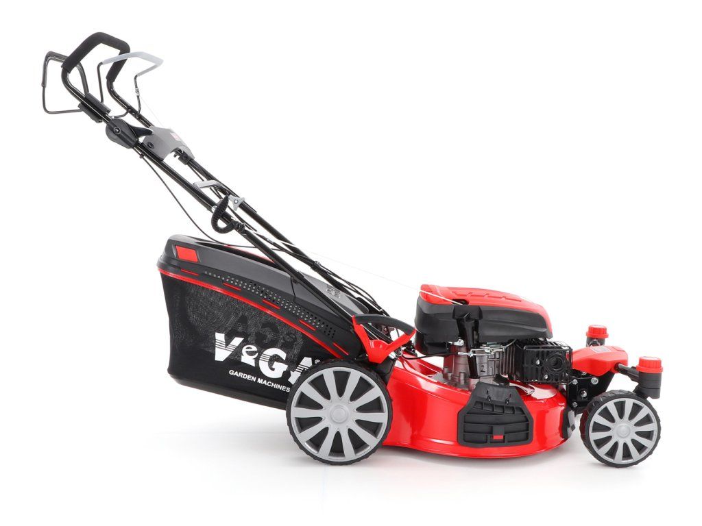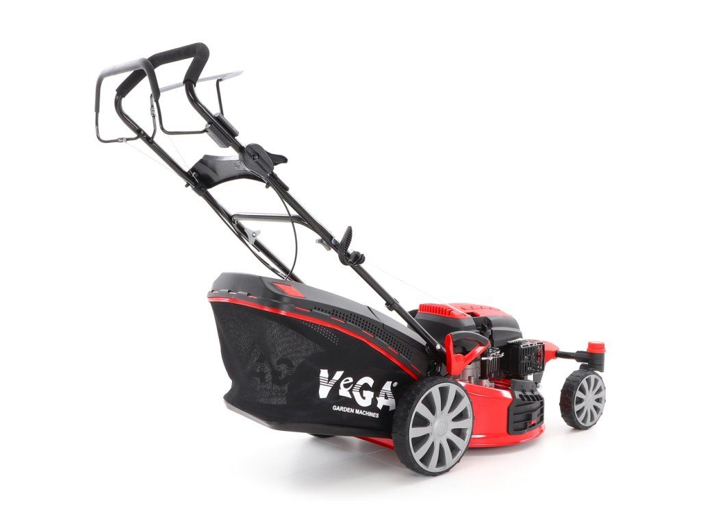 Velká zadní pojezdová kola i přední kola jsou uložena v oboustraných kuličkových ložiscích, centrální nastavení výšky sečení je u značky VeGA také samozřejmostí, jako ergonomické měkčené madlo. Objemný sběrný koš o kapacitě 70 litrů má ukazatel naplnění. Na sekačky VeGA je poskytována prodloužená záruka 3 roky.