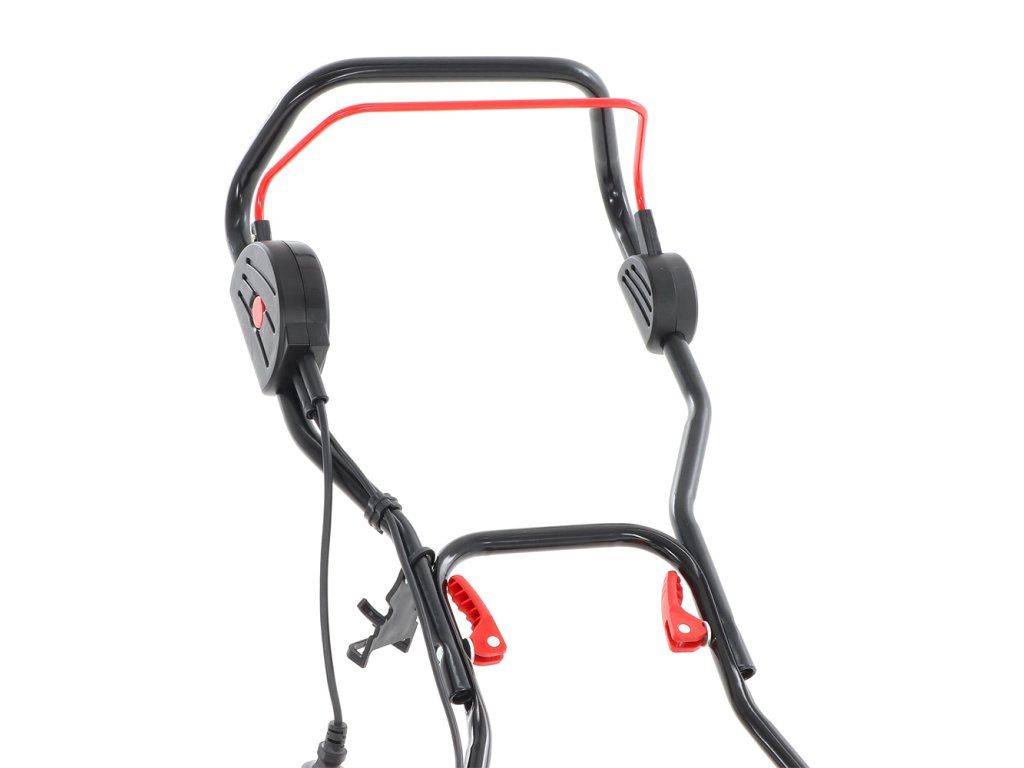• převod otáček pomocí malého klínového řemene výrazně zvyšuje točivý moment stroje (více síly i v hustší trávě) a při nárazu nože na překážku zabrání spálení motoru a tím pádem i drahé opravě