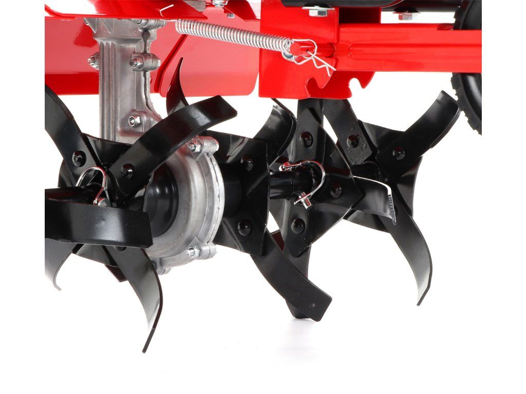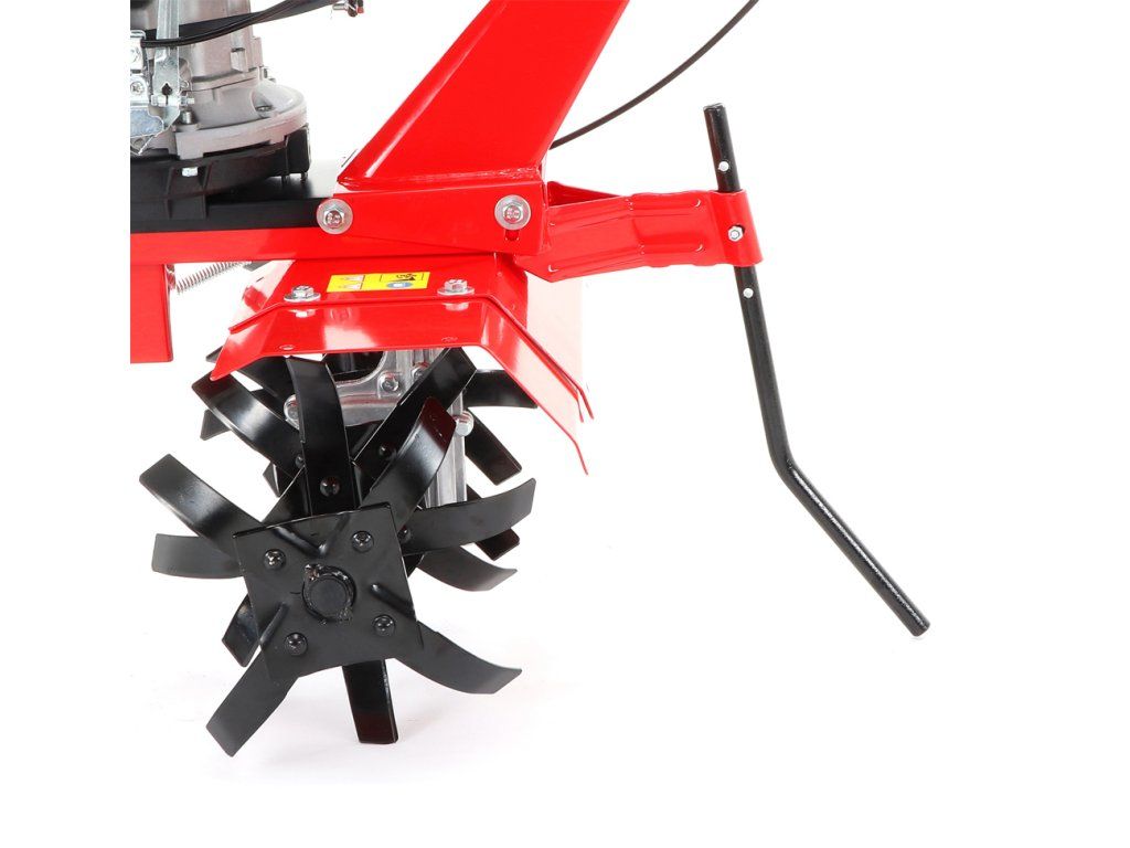 Tento kultivátor se pyšní robustní konstrukcí a odolnou kovovou převodovkou, což zajišťuje jeho dlouhou životnost i při intenzivním používání. Ergonomická rukojeť a přední madlo usnadňují manipulaci a poskytují vynikající ovladatelnost. Nastavitelná hloubka kultivace až do 26 cm umožňuje přizpůsobit stroj různým druhům půdy, zatímco speciálně tvarované nože zajišťují důkladné rozmělnění zeminy.