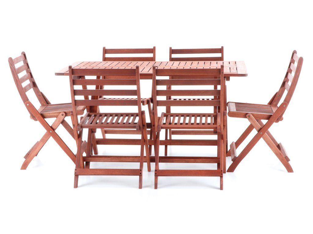 Luxusní zahradní nábytek VeGA SET 6 - je vyroben z tmavě červeného meranti . Meranti je označení pro více druhů dřevin z rodu Shorea pocházejících z jihovýchodní Asie. Meranti je nejžádanějším z tropických materiálů na výrobu zahradního nábytku. Tato dřevina našla své uplatnění jak v interiéru pro svůj dekorativní vzhled ( má unikátní červenohnědou barvu díky které na každém kusu nábytku dokonale vynikne kresba dřeva) , ale především v exteriéru na výrobu zahradního nábytku, oken a dveří pro svoji vynikající trvanlivost , dlouhou životnost , vysokou tvrdost a dobrou opracovatelnost.