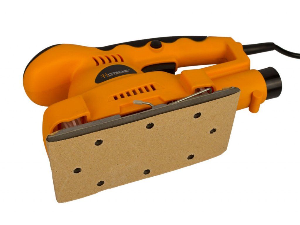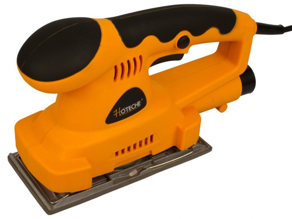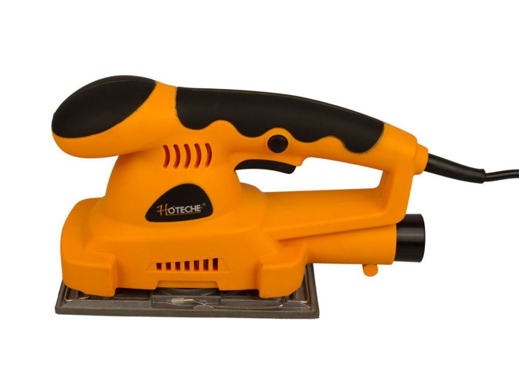 Vibrační bruska značky Hoteche s příkonem 180 W a otáčkami 11000 ot./min. je vhodná pro broušení dřevěných materiálů, kovů, laků či plastů.