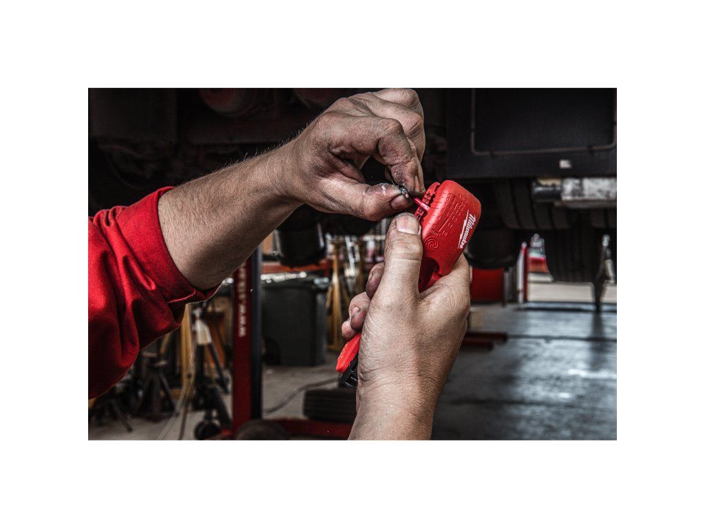 - Ergonomicky tvarovaná rukojeť a vroubky na krytu, které zabraňují sklouznutí při práci.