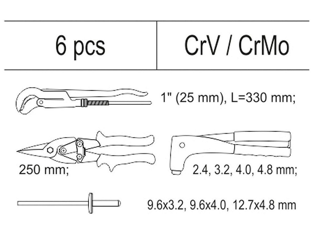 Vložka do zásuvky - kleště nýtovací, 3x sada nýtů, nůžky na plech, hasák 330mm