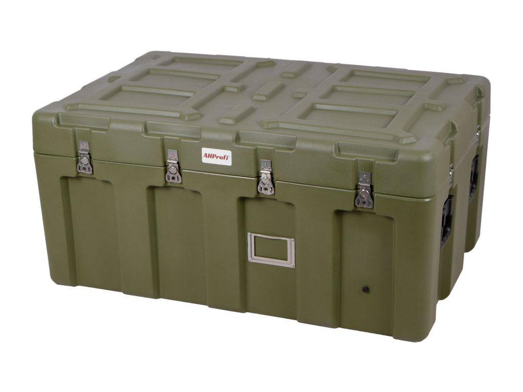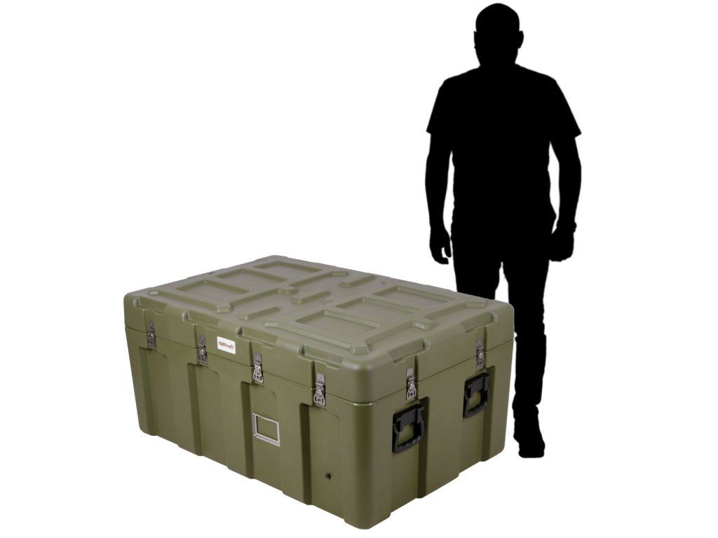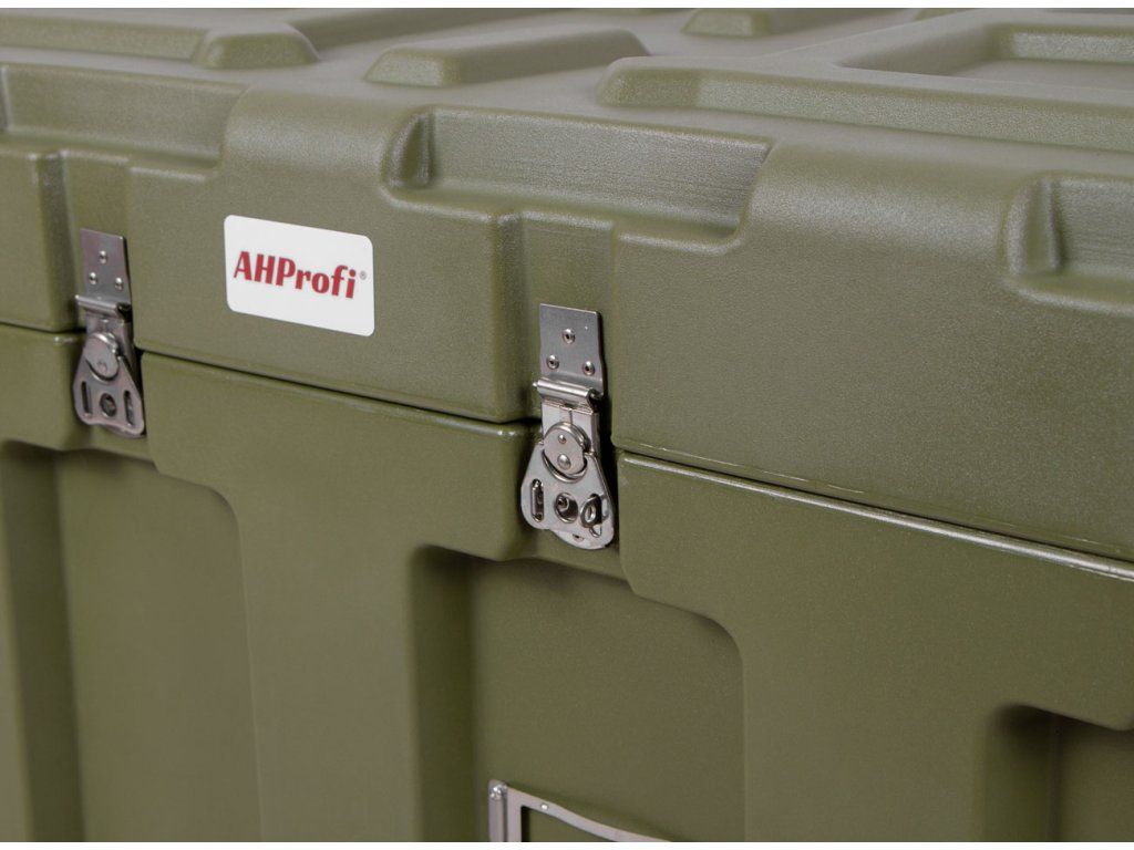 - Rotačně tvarovaný polyetylenový užitkový kufr s vestavěným přetlakovým ventilem.