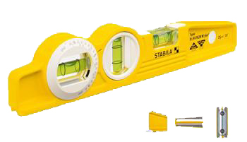 • Libela pro spád 1 % a 2%. Stabilní libela s úhlem 45° pro přímou kontrolu vzpěr a potrubí s úhlem 45°.