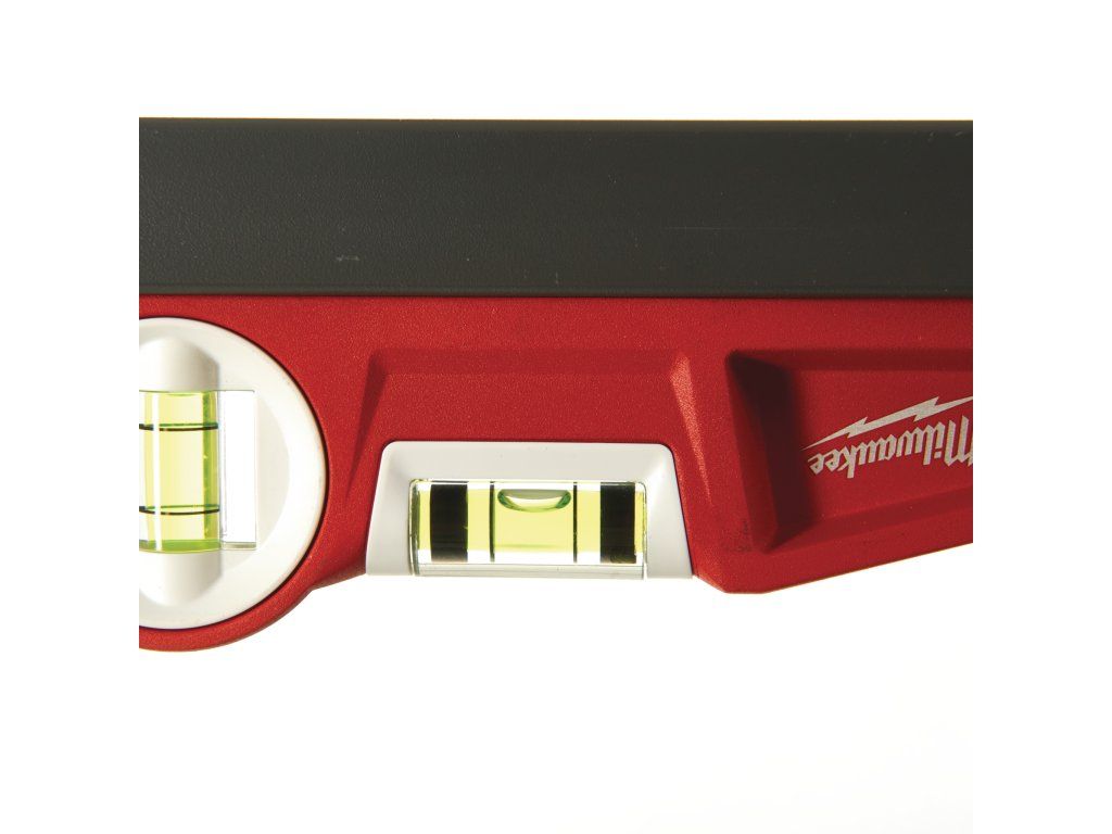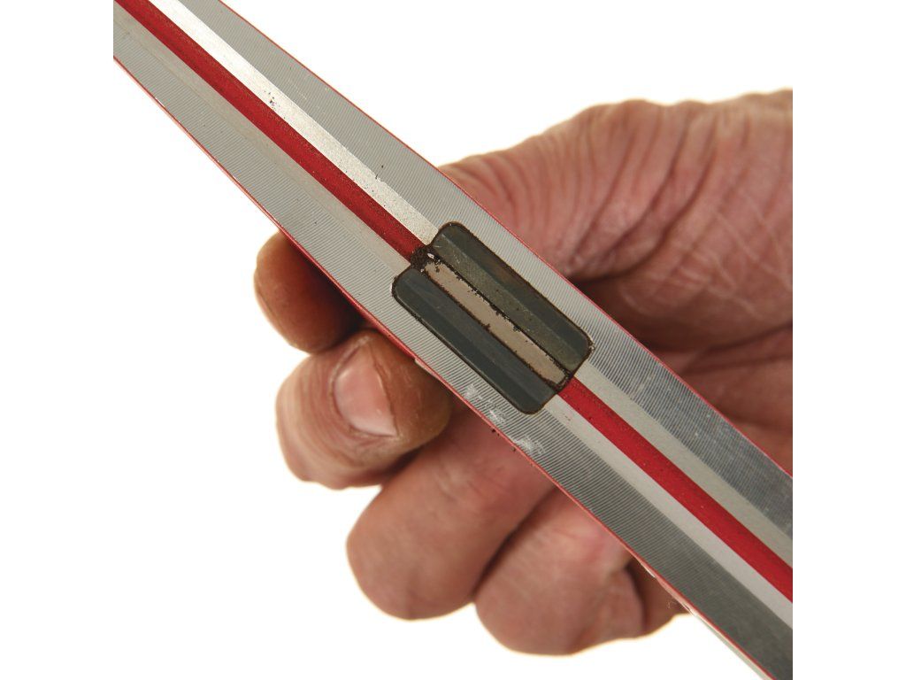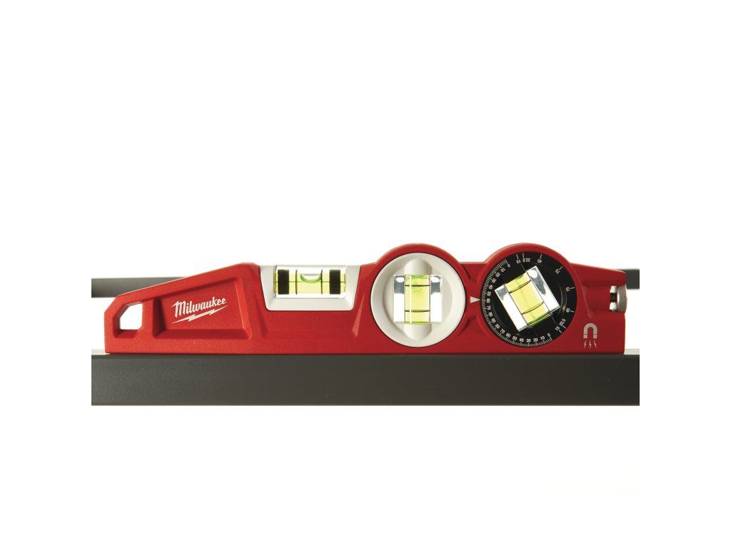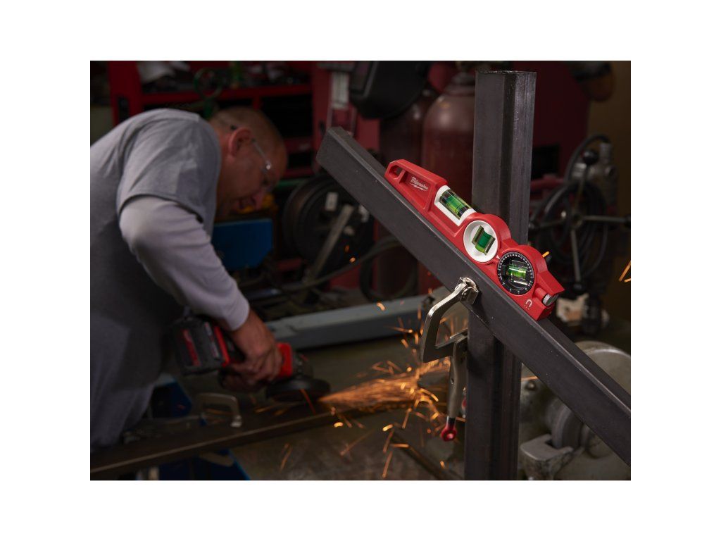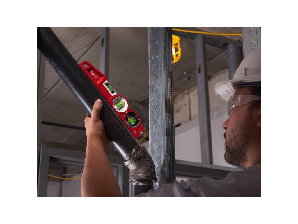 - 360° nastavitelná libela s možnosti uzamčení. Identifikuje a opakuje nastavení jakéhokoliv úhlu potřebného na pracovišti. Libela se uzamkne kvůli zajištění přesnosti měření, klidně i po vyjmutí z kapsy.