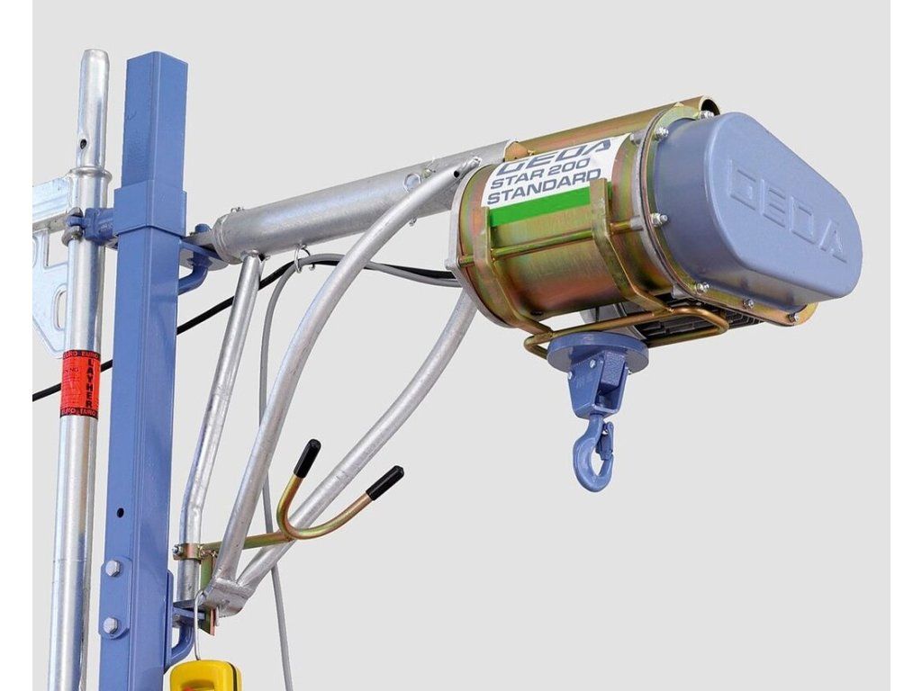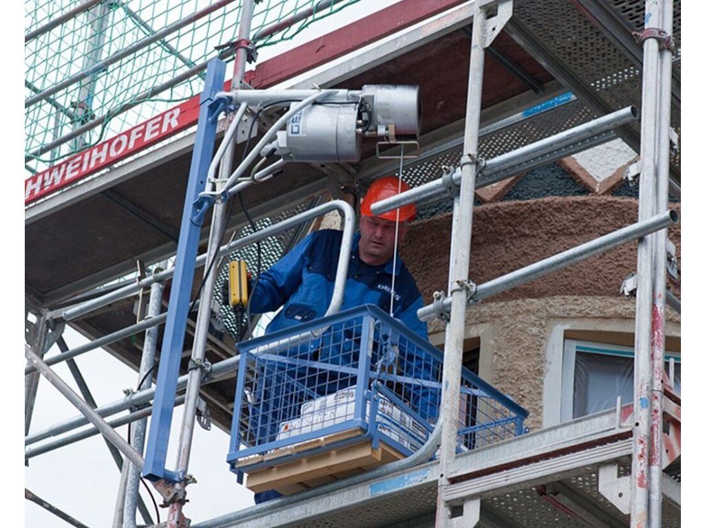 Obzvláště výhodnou vlastností je, že kompaktní zařízení lze instalovat na libovolné místo na lešení, do okna, mezi podlaží nebo na střechu. Elektrický naviják lze oddělit od otočného ramene, což umožňuje instalaci jednou osobou.