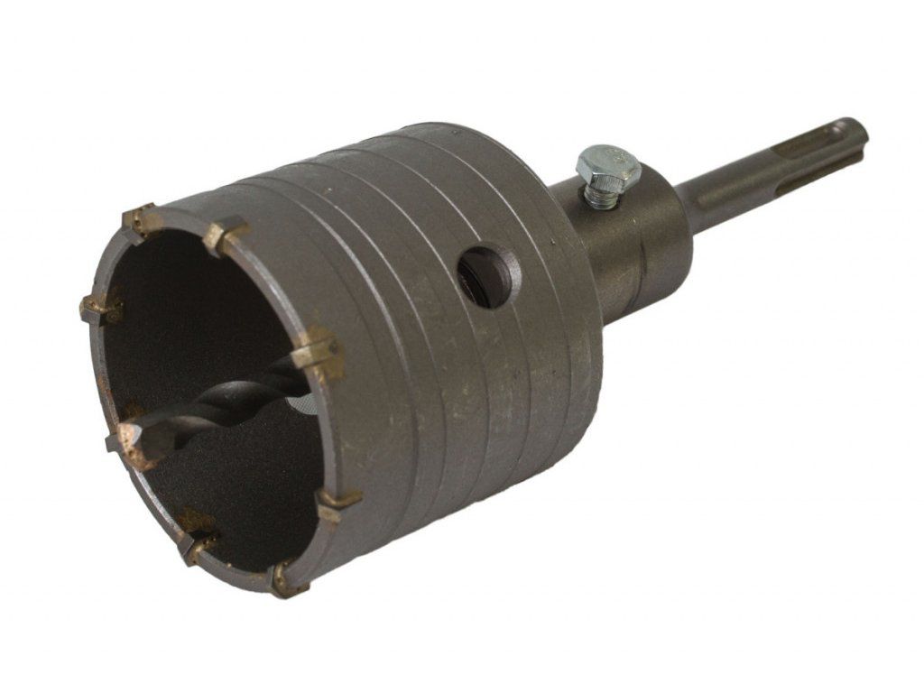 Korunkový vrták značky Hoteche pro bezpříklepové vrtání do zdiva a kamene a jiných stavebních materiálů. Díky bezpříklepovému vrtání je otvor čirý a bez nebezpečí prasknutí povrchu.
