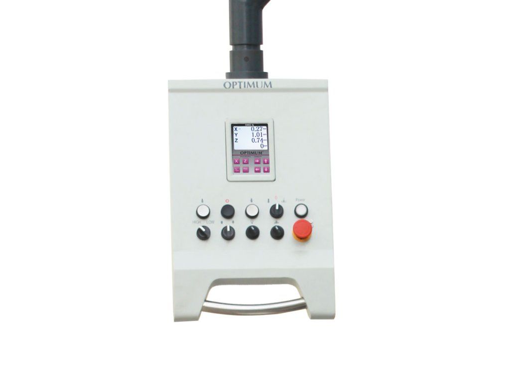 Univerzální vrtačko-frézka s digitálním odměřováním polohy a litinovým podstavcem.