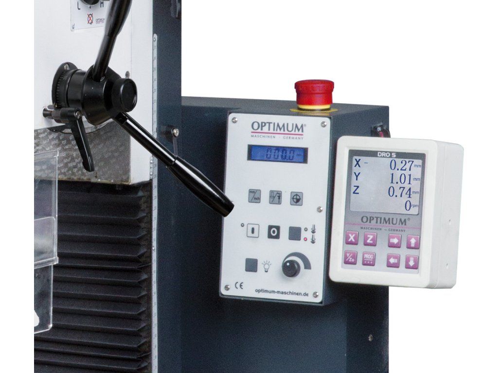 Stabilní vrtačko-frézka s elektronickou plynulou regulací otáček a digitálním měřičem polohy DRO 5.