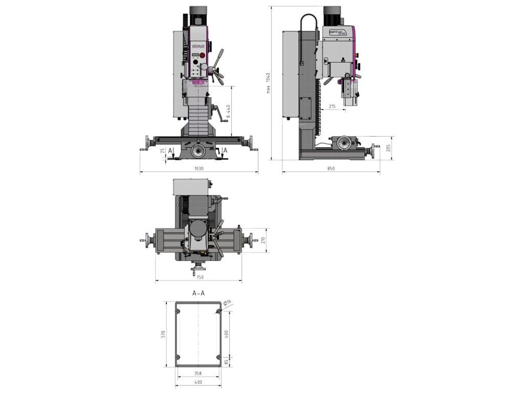 - Těžký, stabilní a masivní sloup, vyrobený z vysoce kvalitní litiny, s broušeným a zaškrabaným rybinovým vedením zajišťuje vysokou stabilitu a přesnost