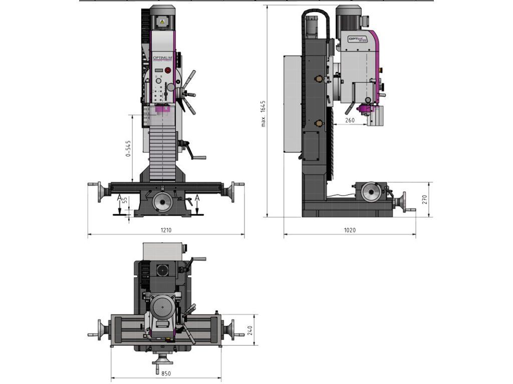 - Těžký, stabilní a masivní sloup, vyrobený z vysoce kvalitní litiny, s broušeným a zaškrabaným rybinovým vedením zajišťuje vysokou stabilitu a přesnost
