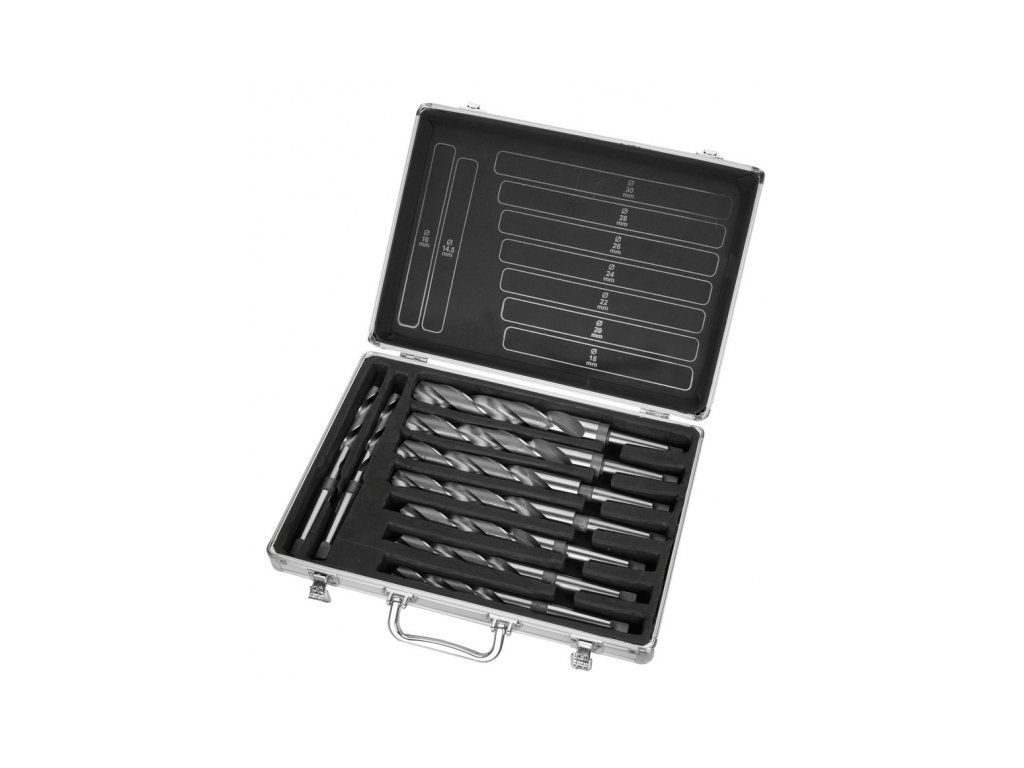 Sada 9 kusů vrtáků v průměrech 14,5/16/18/20/22/24/26/28/30 mm, v kovovém kufříku.