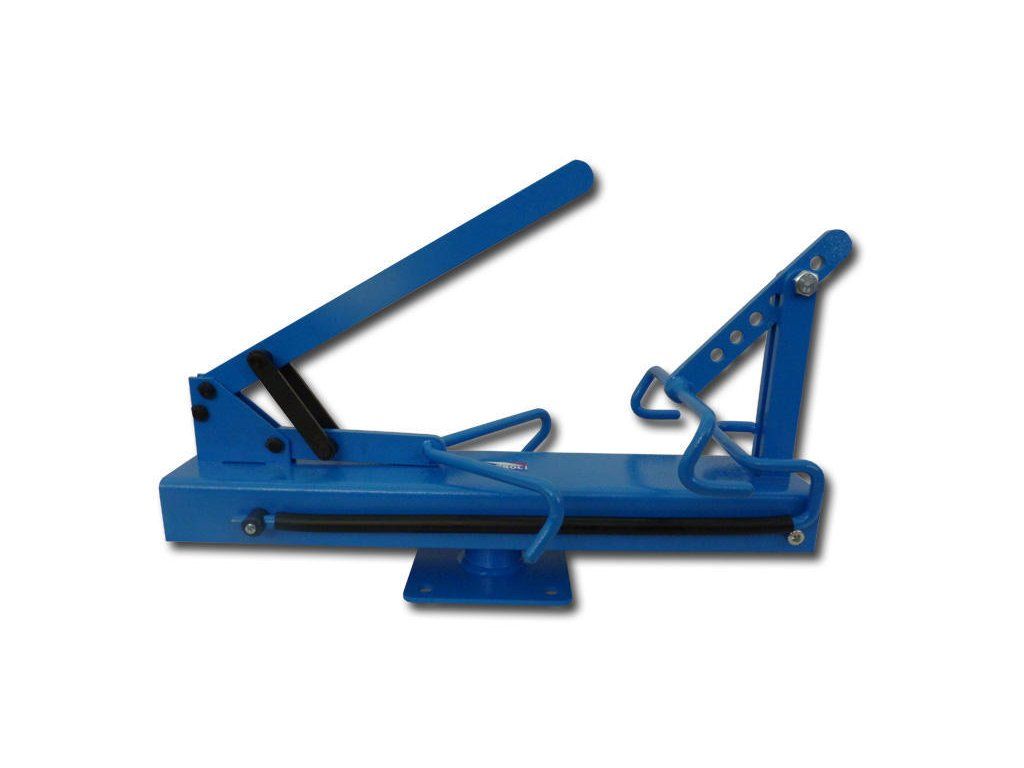 Přípravek pro vybrušování plášťů a duší při opravě defektů. Pevná kovová konstrukce s plochou připravenou ke připevnění na stůl apod.