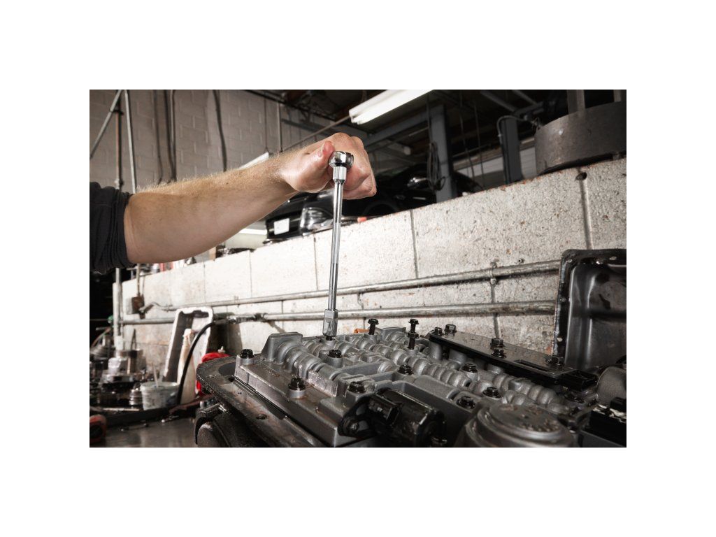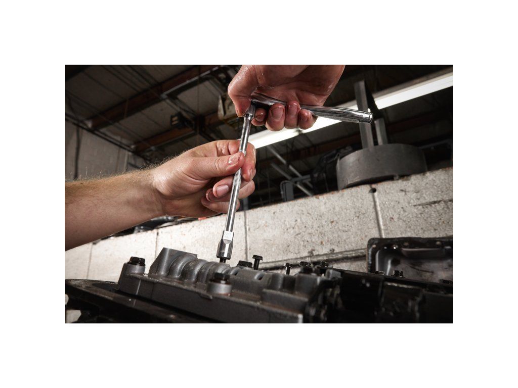- Díky výkyvné funkci je zajištěn dodatečný přístup do stísněných prostor a po úplném zasunutí lze použít i jako standardní nástavec.