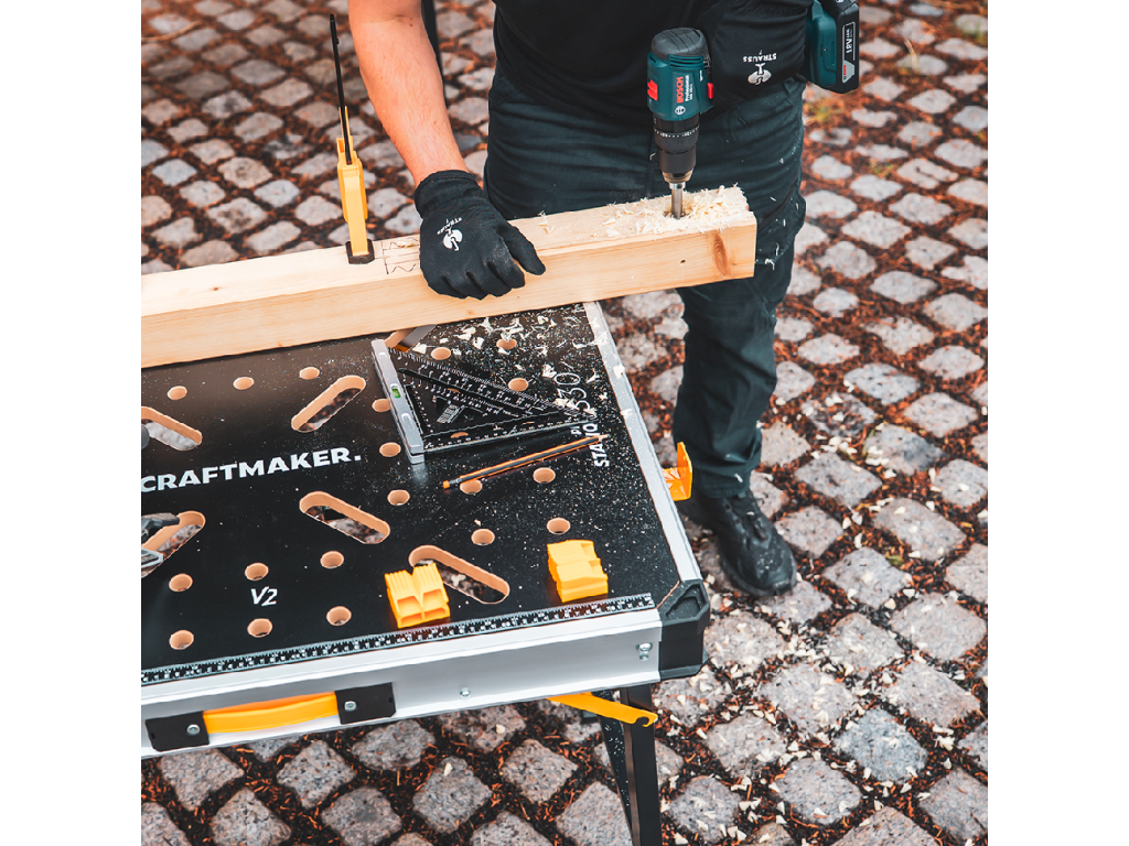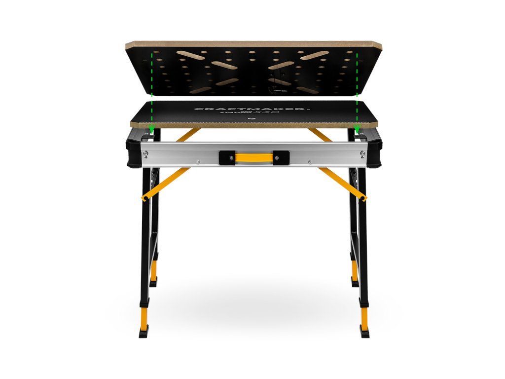 Náhradní pracovní deska CRAFTMAKER ProStation Worktop s 20mm otvory pro bench dog zarážky. Je určená pro multifunkční skládací stůl Pro Station S30. Rychlá výměna a můžete pokračovat v práci na vašem projektu. Oceníte otvory pro bench dog zarážky a kompatibilní svorky. Pro potřeby měření je zde po obou delších stranách desky natištěná metrická stupnice s rozsahem 0-74 cm.