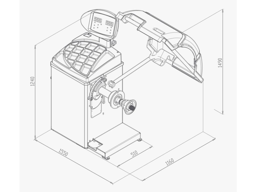 Vyvažovačka kol CB67 je vybavena mikroprocesorem provádějícím všechny systémové funkce.