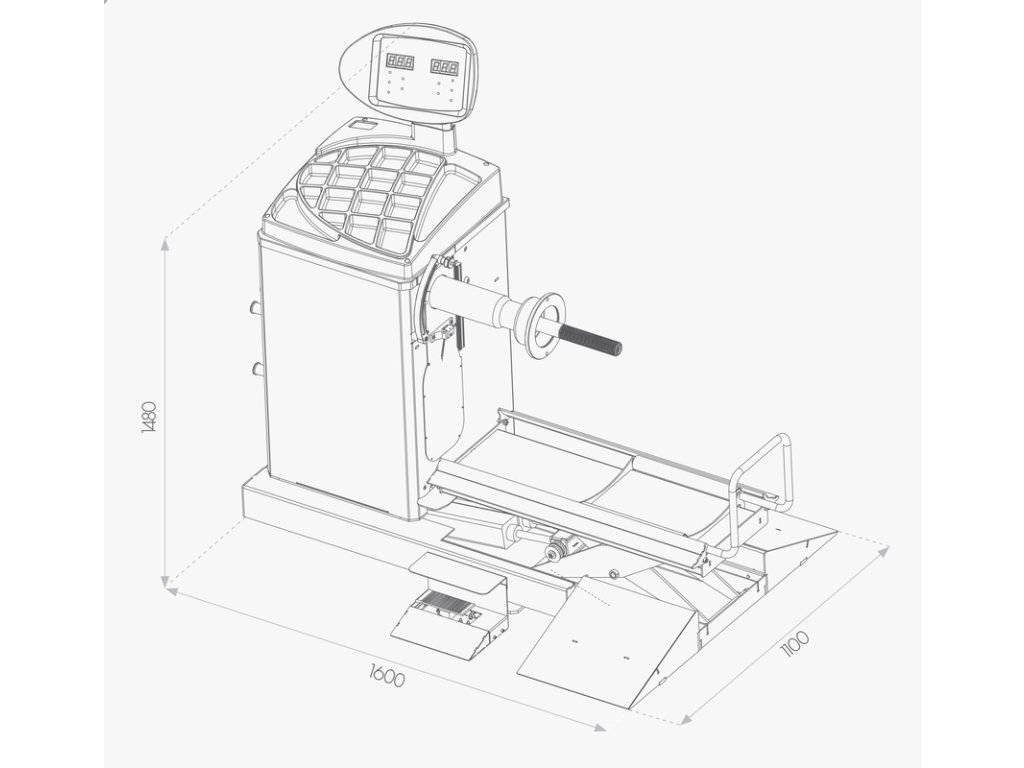K příjemné práci přispívá pneumatický zvedák kol s nožním ovládáním. CB46 plně vyhoví požadavku na vyvažování i velkých a širokých kol, protože má délku hřídele 410 mm.