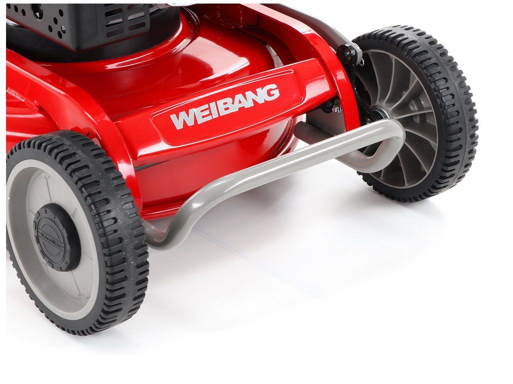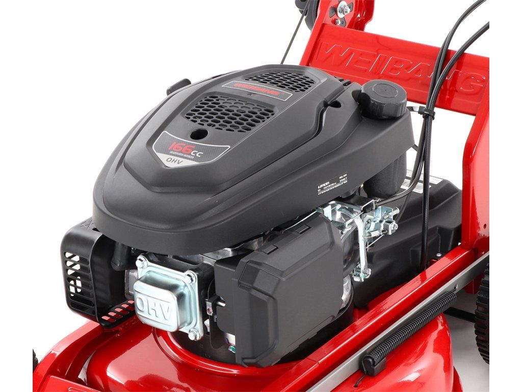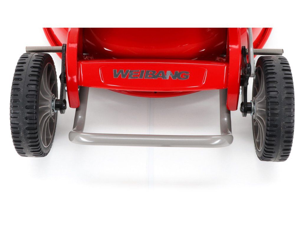 Tato funkce může eliminovat škody na sekačce způsobené nárazem nože do překážky. Dále je tato sekačka vybavena pevnými zadními koly a sklopnou rukojetí pro snadné uskladnění a přepravu. Dalším velkým unikátem je motor, který patří mezi silné motoryí co WEIBANG v této třídě nabízí.