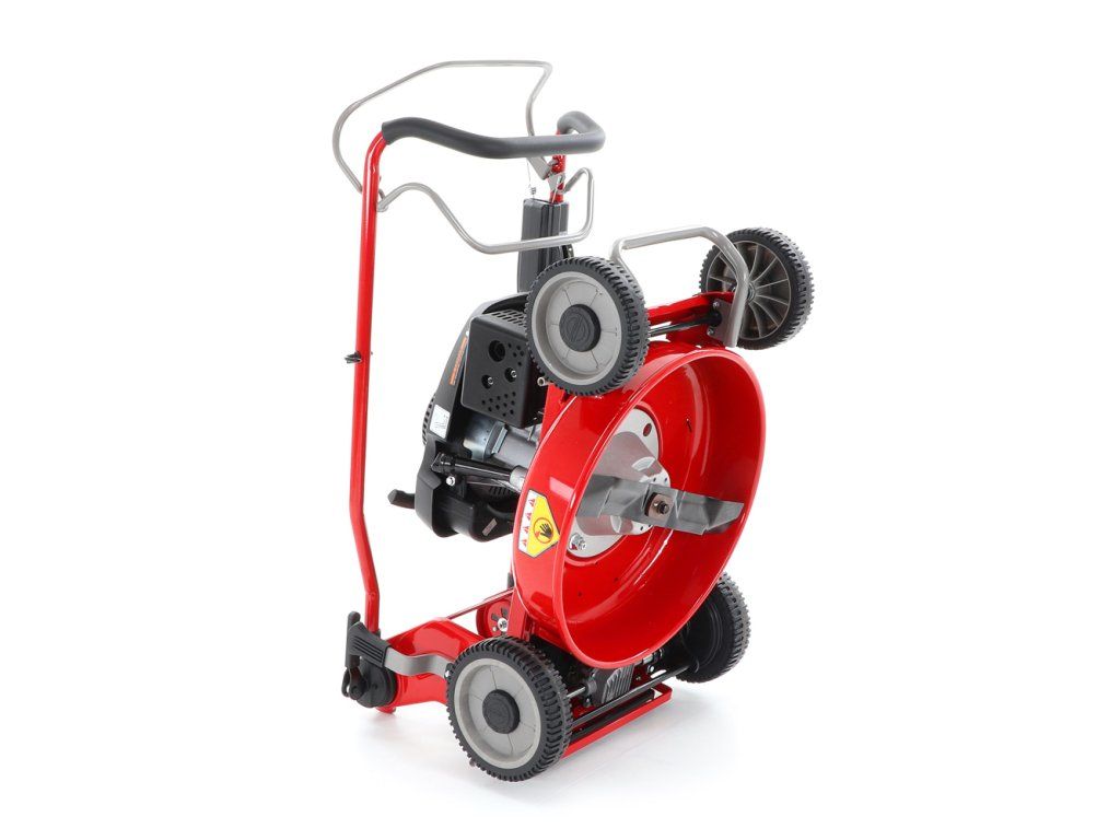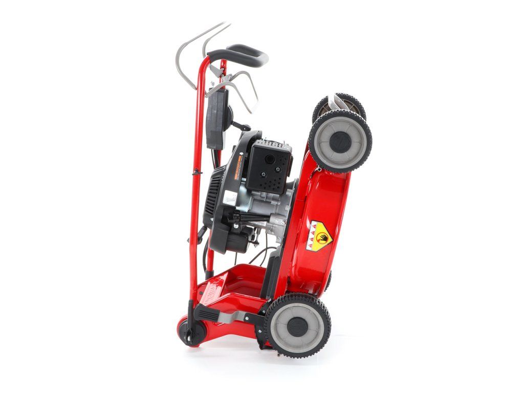 Novinkou sekačky je funkce tzv. "CHYTRÉ ŘEŠENÍ", sekačku lze pro ekonomické uskladnění, snadné čištění, servisování otočit a postavit na zadní speciální patky šasí, tímto se snadno dostanete na spodní část žacího ústrojí, uložení náprav a převodovku.