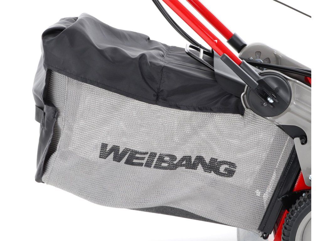 Sekačka WEIBANG WB 506 SBV 6in1 vyniká speciálním pevným a masivním ocelovým šasim. Velkou předností této sekačky je variabilnost použití funkcí 6 in 1, což znamená, že sekačka WEIBANG WB 506 SBV 6in1 umí sbírat posečenou trávu do koše, mulčuje, vyhazuje trávu bokem,