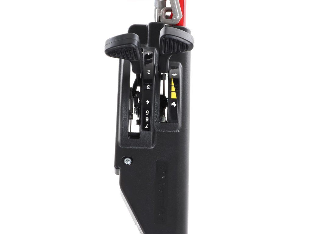 centrální nastavení výšky sečení je u této značky samozřejmostí. Velkým nadstandardem u této sekačky je použita speciální třecí spojka na noži sekačky pod unášečem, která je schopna prokluzu nože při naražení do pevné překážky.
