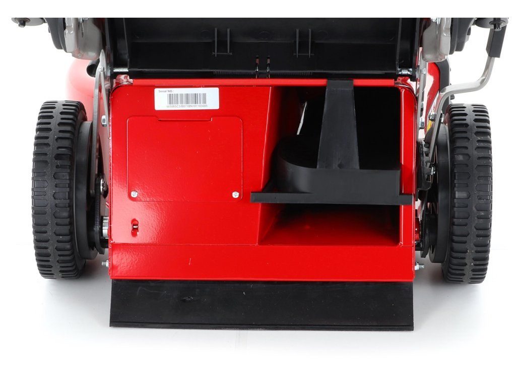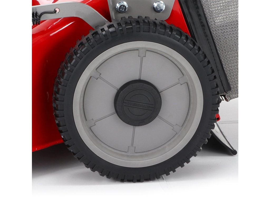 Dále je tato sekačka vybavena pevnými zadními koly a sklopnou rukojetí pro snadné uskladnění a přepravu. Masivní žačí nůž s mohutnými vyhazovacími "lopatami - tzv. BIG BLADE" a velký koš spolu se zajímavou cenou dělají z této sekačky WEIBANG WB 506 SCV 6in1