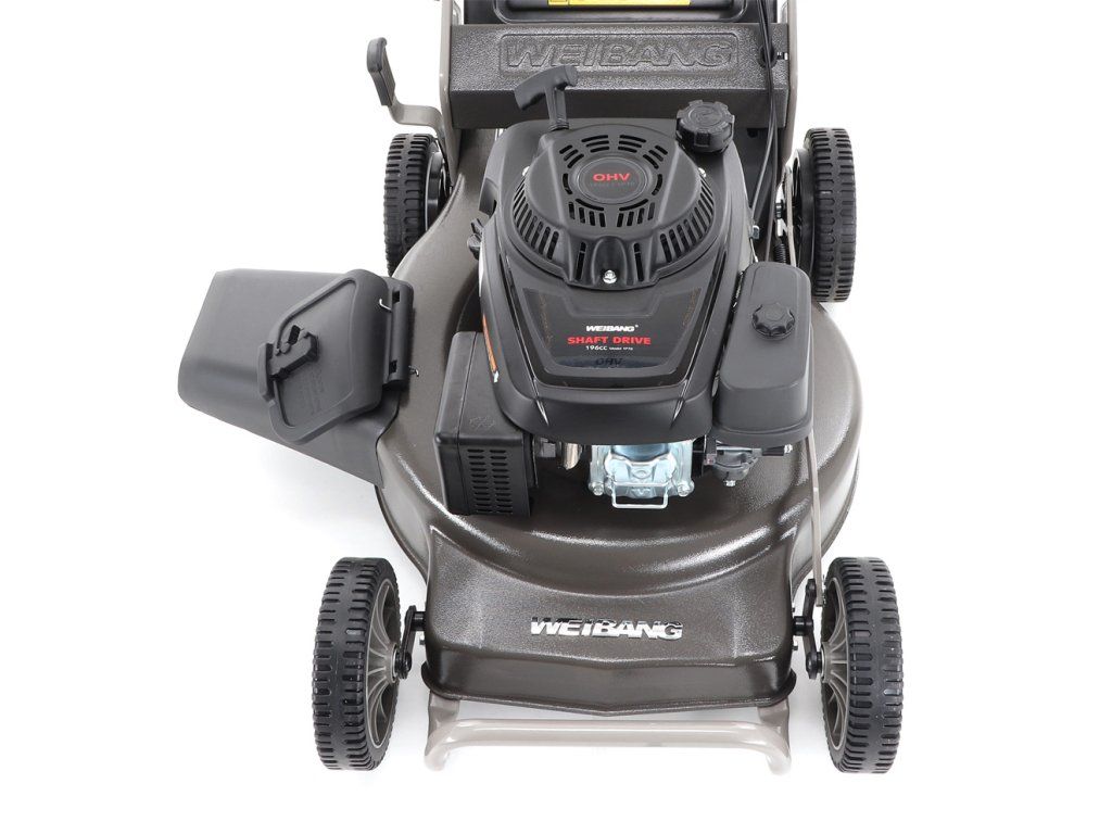 Travní benzinová sekačka WEIBANG WB 537 SCV 6v1 s hřídelovým pohonem a 3 rychlostní profi převodovkou – Sekačka, která zvládne opravdu vše