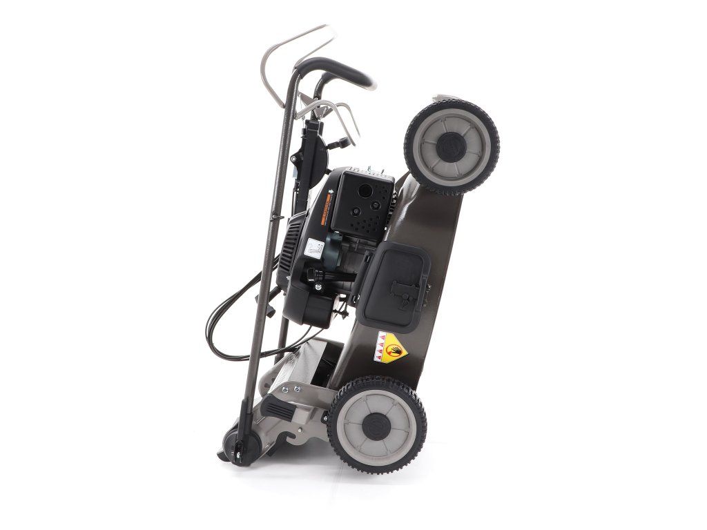Zadní výhoz: ANO v profesionální nástavbě Ovládací panel na rukojeti: ANO Ergonomicky měkčená rukojeť: ANO Kovové rychloupínáky madla: ANO