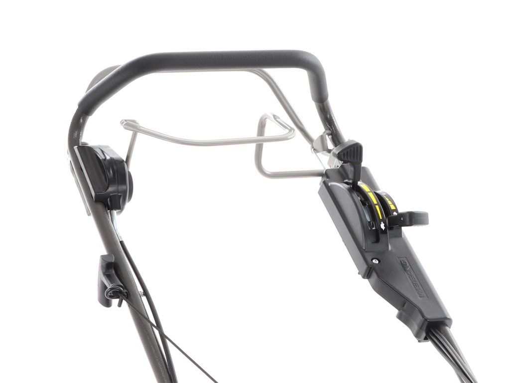 Zadní výhoz: ANO v profesionální nástavbě Ovládací panel na rukojeti: ANO Ergonomicky měkčená rukojeť: ANO Kovové rychloupínáky madla: ANO
