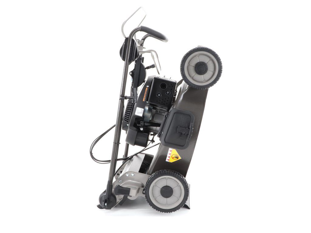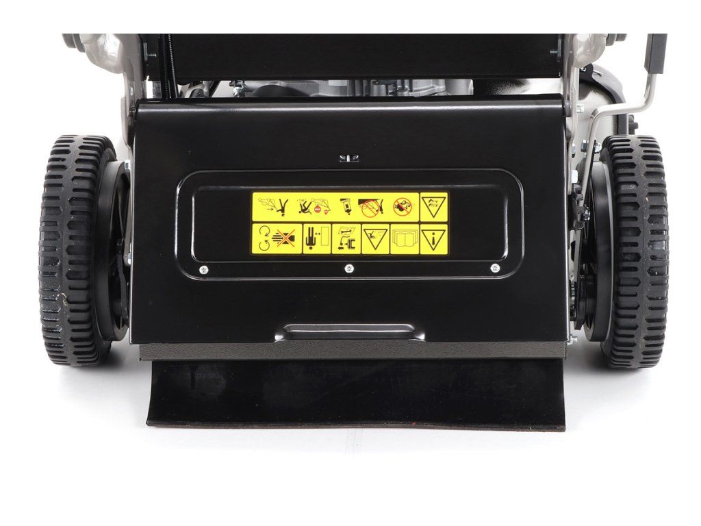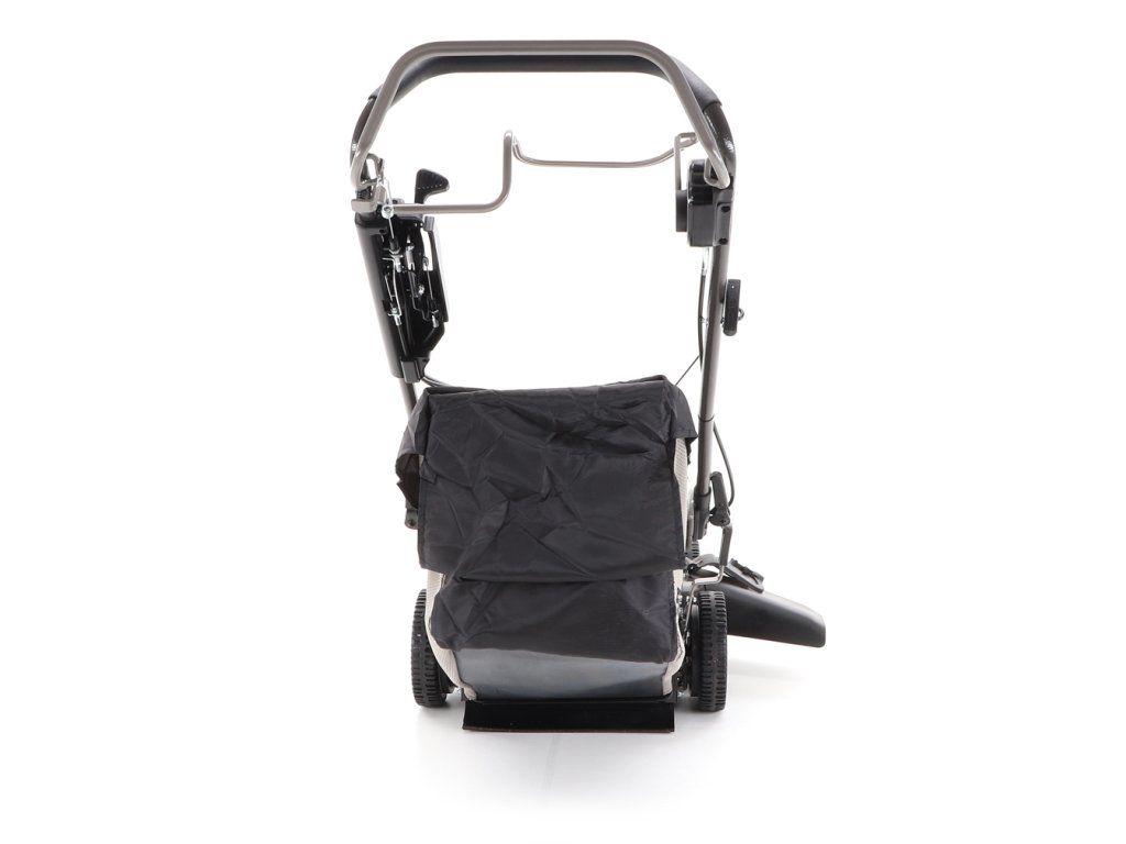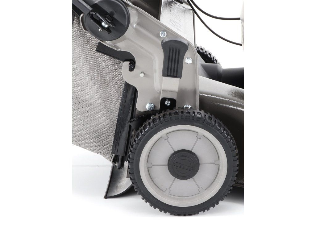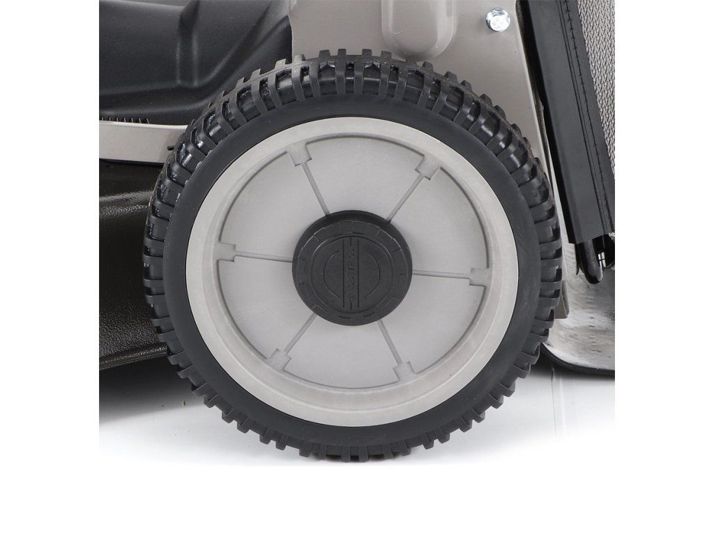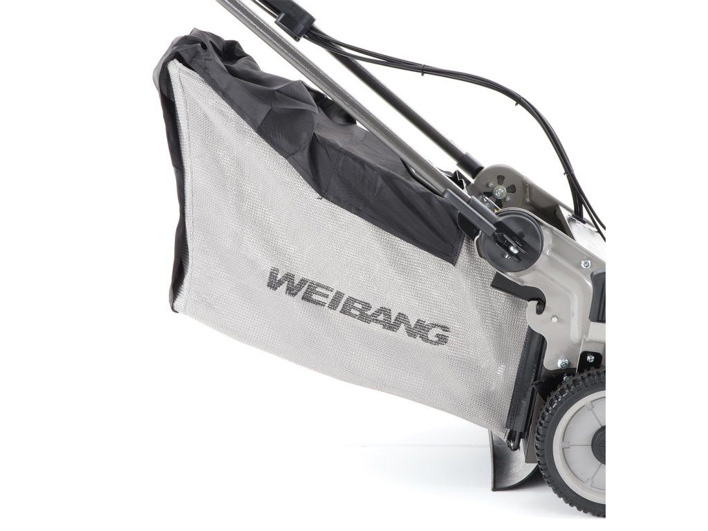 Dále je tato sekačka vybavena pevnými zadními AL koly a sklopnou rukojetí pro snadné uskladnění a přepravu. Masivní žačí nůž s mohutnými vyhazovacími "lopatami - tzv. BIG BLADE" a velký koš spolu se zajímavou cenou dělají z této sekačky WEIBANG WB 537 SCV BBCPRO